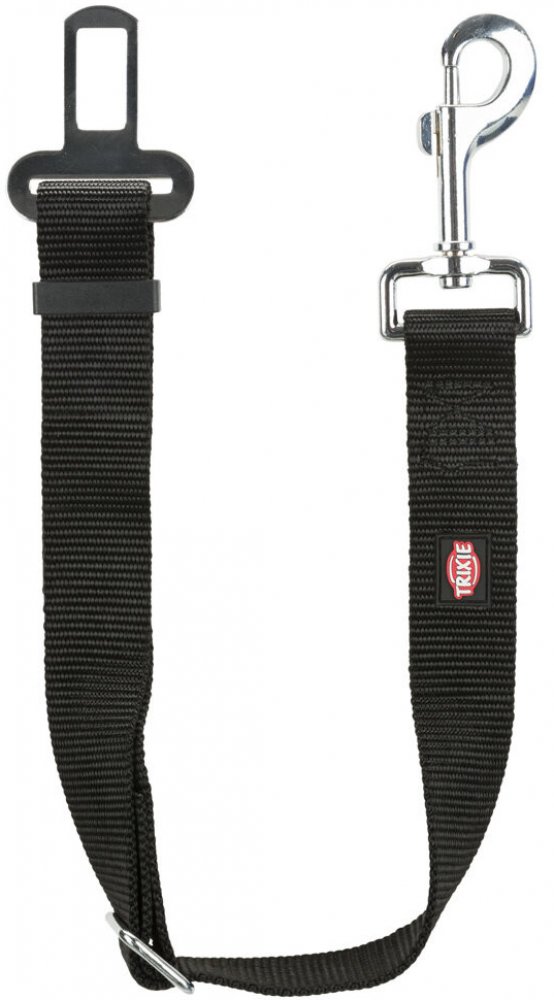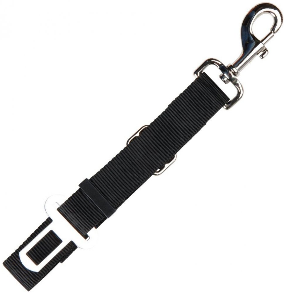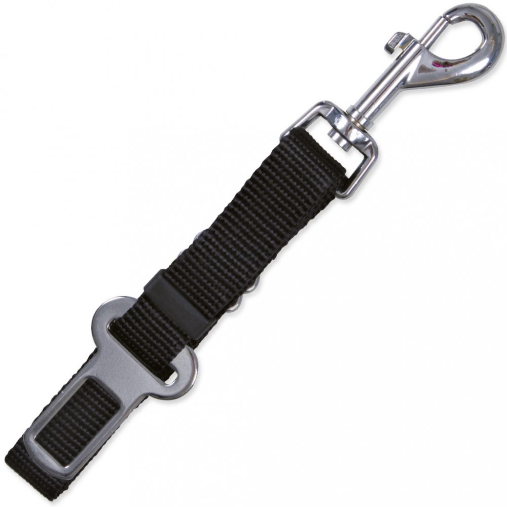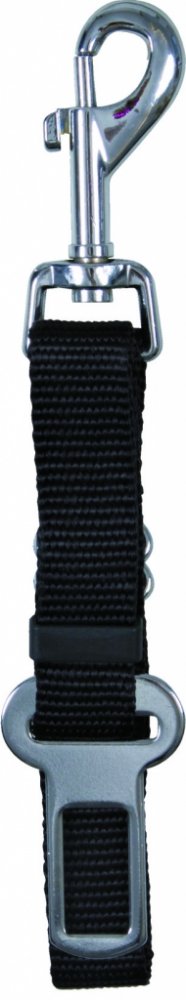 Nastavitelná bezpečnostní spojka do auta, s kovovou karabinou, na připnutí k postroji psa. Tato spojka nabízí skvělou možnost, jak Vašeho pejska bezpečně převážet v autě. Pejsek je bezpečně připoután na svém místě, a to zabraňuje nebezpečnému dovádění v autě nebo výskoku z otevřeného okna či dveří. Tím je zajištěno vyšší bezpečí a také je Vaše zvíře chráněno v průběhu cesty. Bezpečnostní spojka je z odolného nylonu, který není možné roztrhnout, na jedné straně je opatřena karabinou na připnutí k postroji psa, na druhé je koncovka do zástrčky pro bezpečnostní pásy v autě. Nikdy spojku nepřipínejte k obojku, hrozí zranění psa. Všechny propojovací prvky jsou vyrobeny z pevného kovu. Spojka je dostupná ve dvou rozměrech koncovky pro zástrčku bezpečnostního pásu v autě. Je vhodná pro většinu aut mimo Volvo, Ford a starší modely aut. Rozměry: délka 40-60 cm, šířka koncovky pásu 2 cm Barva: černá