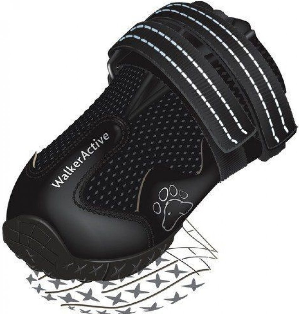 Špičkové ochranné botičky s pevnou protiskluzovou podrážkou z vysoce prodyšného materiálu. Nabízejí maximální komfort a ochranu před poraněním či vznikem infekce. Odolná protiskluzová podrážka je vhodná na kamenitý povrch či rozpálený písek nebo asfalt. Jsou však také doporučování pejskům, kteří se často pohybují po kluzkém povrchu, např. dlaždice či mokrý beton. Takovým pejskům poskytnou stabilitu a předejdou tak bolestivému zranění končetin.