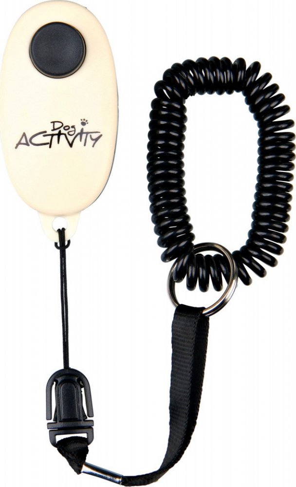 Spirálové lanko pro navléknutí na zápěstí umožní mít klikr vždy po ruce.