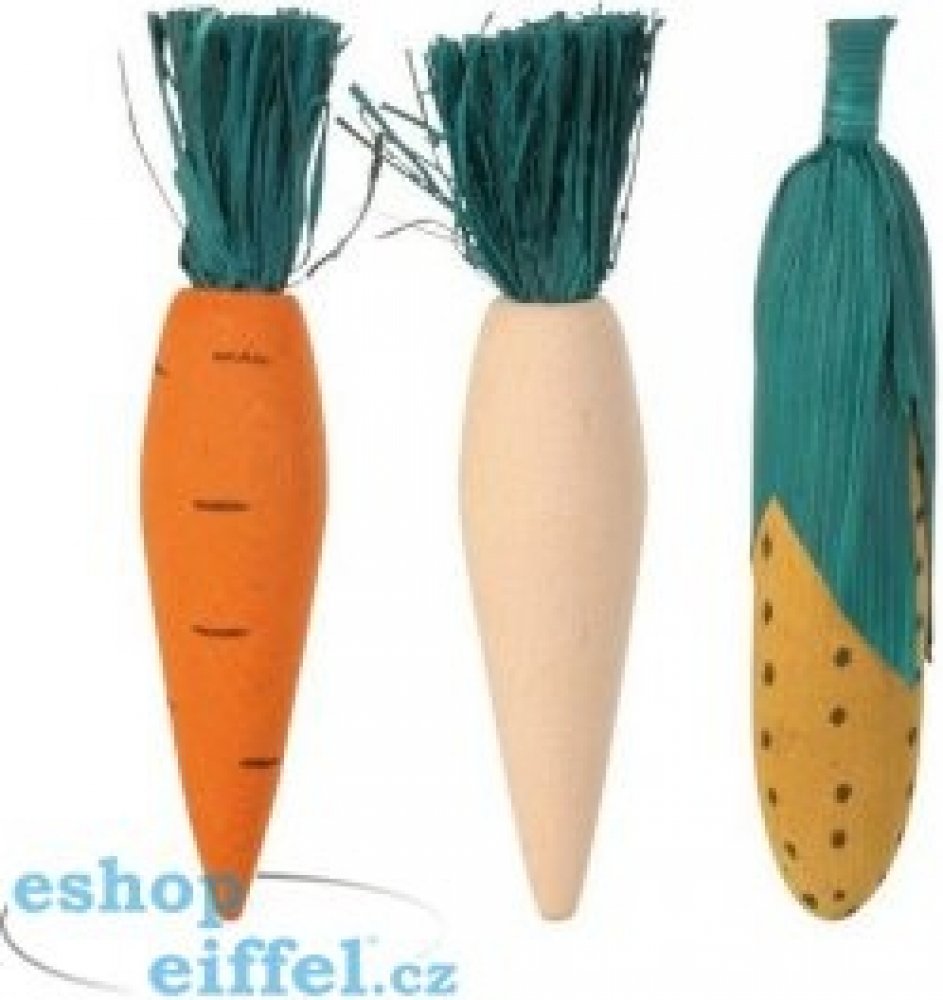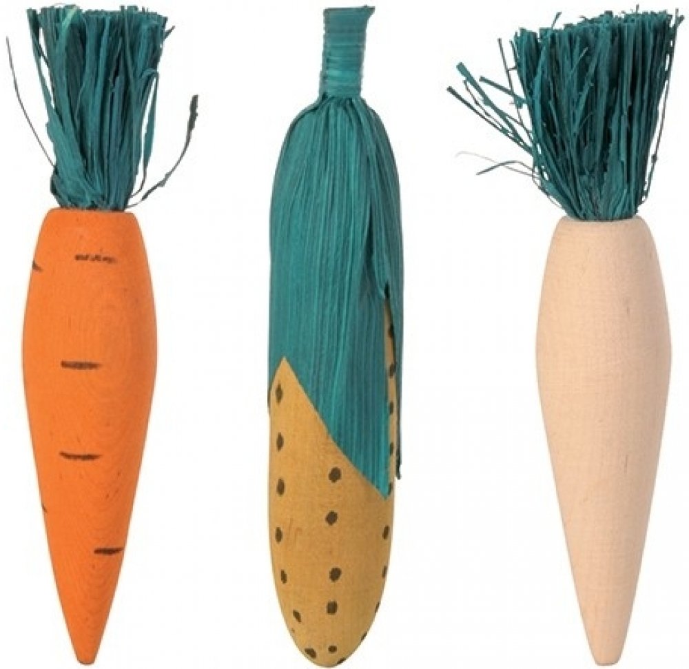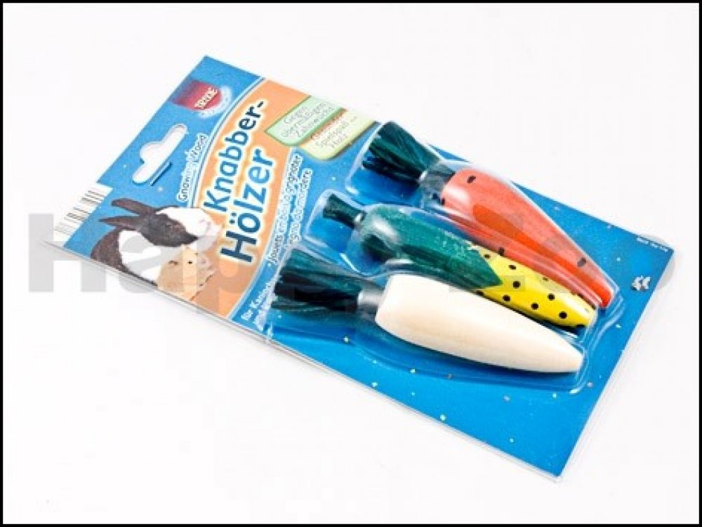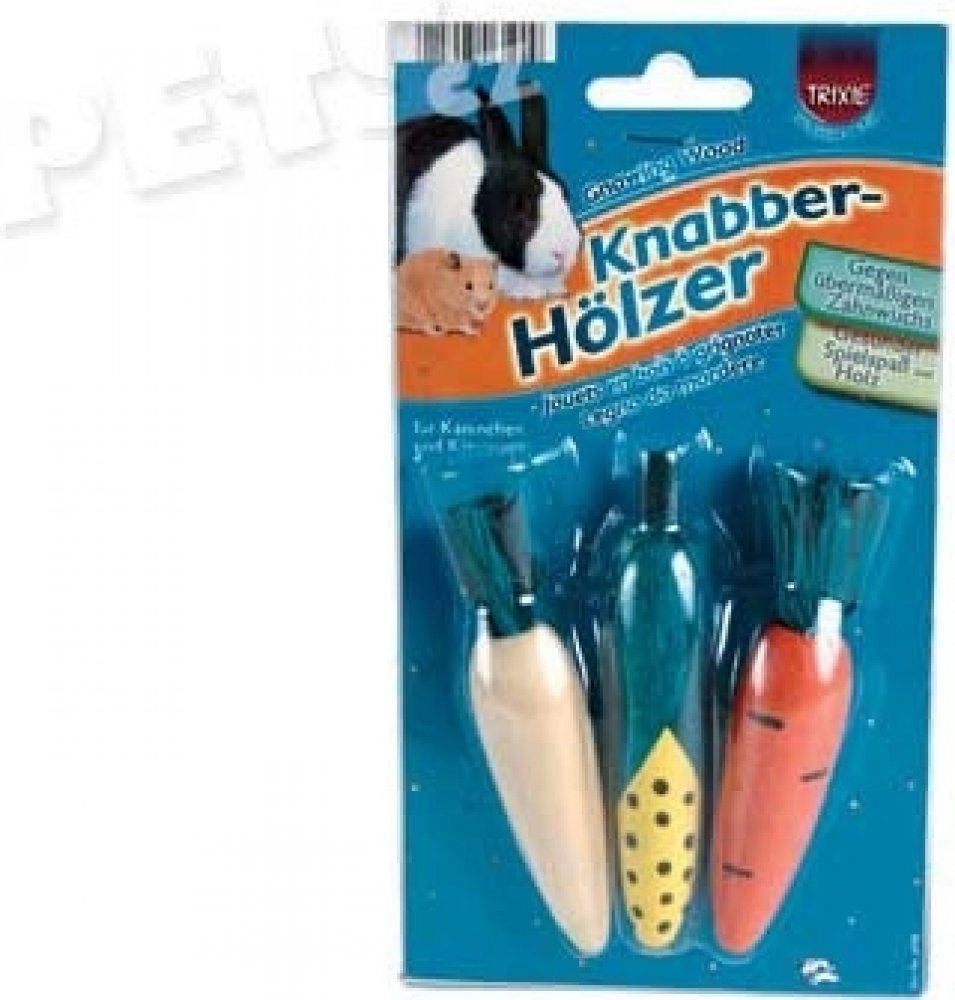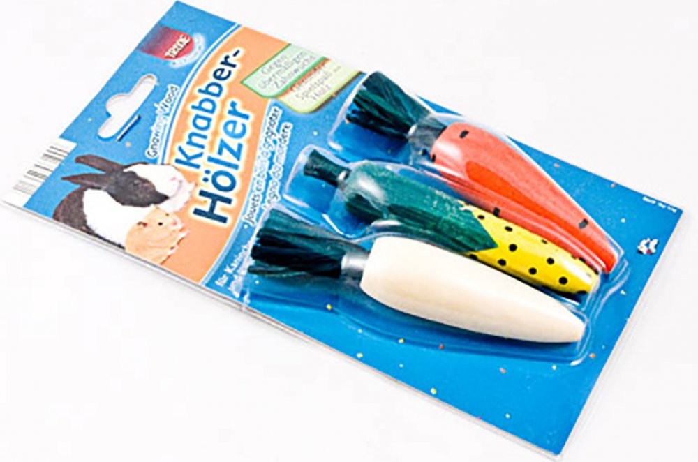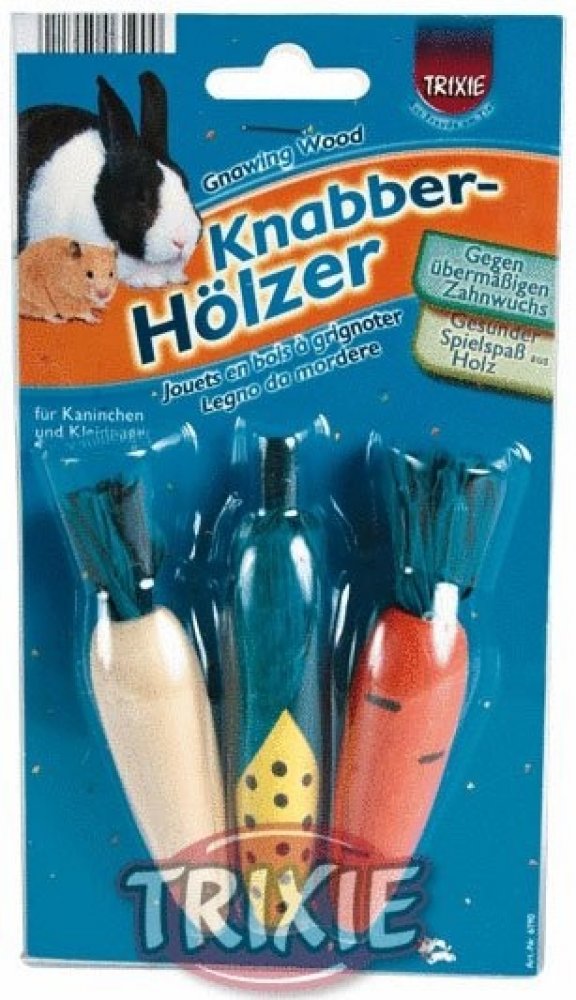 Zdravá zábava pro všechny hlodavce, zabraňuje nadměrnému růstu zubů. Okusovací zelenina je zdravou zábavou, z přírodního dřeva bez škodlivých barev, pro králíky a hlodavce. Hračka zabraňuje nadměrnému růstu zubů a udržuje zuby zdravé a čisté. Balení obsahuje 3 ks zeleniny.