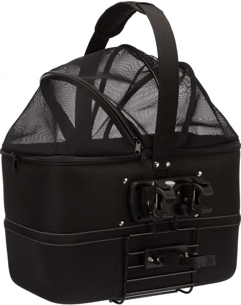 Trixie Friends on Tour Front košík na kolo Vám poskytuje moderní způsob přepravy pro Vašeho psa. Košík lze upevnit bez toho, aby se kýval a během krátké chvíle jej de opět sejmout. Vyjmutelný polštář je součástí výrobku. Košík na kolo je určen k montáži na řídítka. Košík se upevňuje ke kovovému rámu pomocí přezek a suchého zipu. Košík lze opět rychle sejmout a díky popruhu jej lze použít jako normální přepravku. Košík na kolo je vybaven síťkou a krytem proti dešti, díky čemuž je zajištěna ochrana před nepříznivým počasím a jinými vnějšími vlivy. Trixie Friends on Tour Front košík na kolo v přehledu: Košík na kolo pro přepravu malých psů do 6 kg hmotnosti Snadné upevnění k řídítkům Konstrukce k upevnění bez viklání: s kovovým rámem a stabilní taškou Lze snadno sejmout: díky přezkám a zipu Síťový kryt: optimální cirkulace vzduchu, díky zapínání se zipem lze ve středu otevřít Včetně krytu proti dešti: poskytuje ochranu během deštivých dnů Integrované krátké vodítko: ochrana před nechtěným vyskočením S popruhem: košík lze použít jako přepravku Vhodné pro elektrokola Max. hmotnost: 6 kg Materiál: Košík: 65% EVA pěna, 35% polyester Potah polštáře: 100% polyester Ochrana před vyskočením: krátké vodítko, síťový kryt Rozměry: Celkové rozměry (s krytem): D 41 x Š 29 x V 47 cm Rozměry košíku: D 41 x Š 29 x V 26 cm Plocha dna: D 40 x Š 22 cm Bezpečnostní upozornění: Nepřekračujte doporučenou nosnost předmětu. Před první jízdou byste měli pejska navykat na košík, věnujte této činnosti dostatek času. Také Vy si navykněte na košík nejdříve bez zvířete a následně s ním, jelikož se mnou změnit jízdní vlastnosti kola (rovnováha). Držte kolo pevně když do brašny umisťujete zvíře. Použijte postroj, abyste psa mohli zabezpečit pomocí krátkého vodítka. Při použití stojánku hrozí nebezpečí, že se kolo se zvířetem překlopí. Nenechávejte tedy zvíře v košíku bez dozoru.
