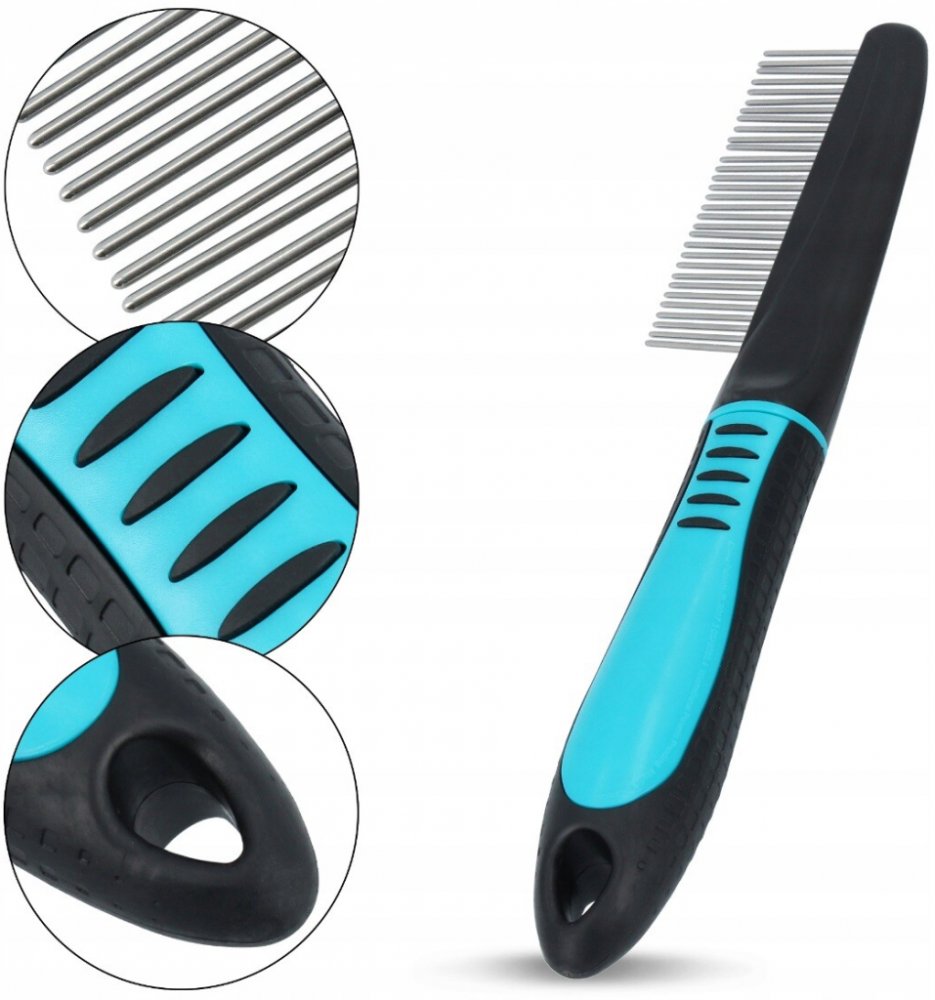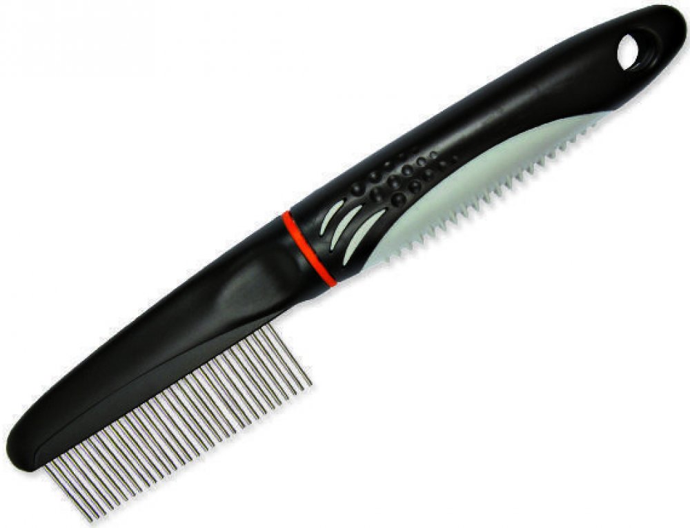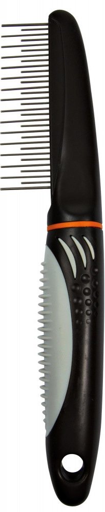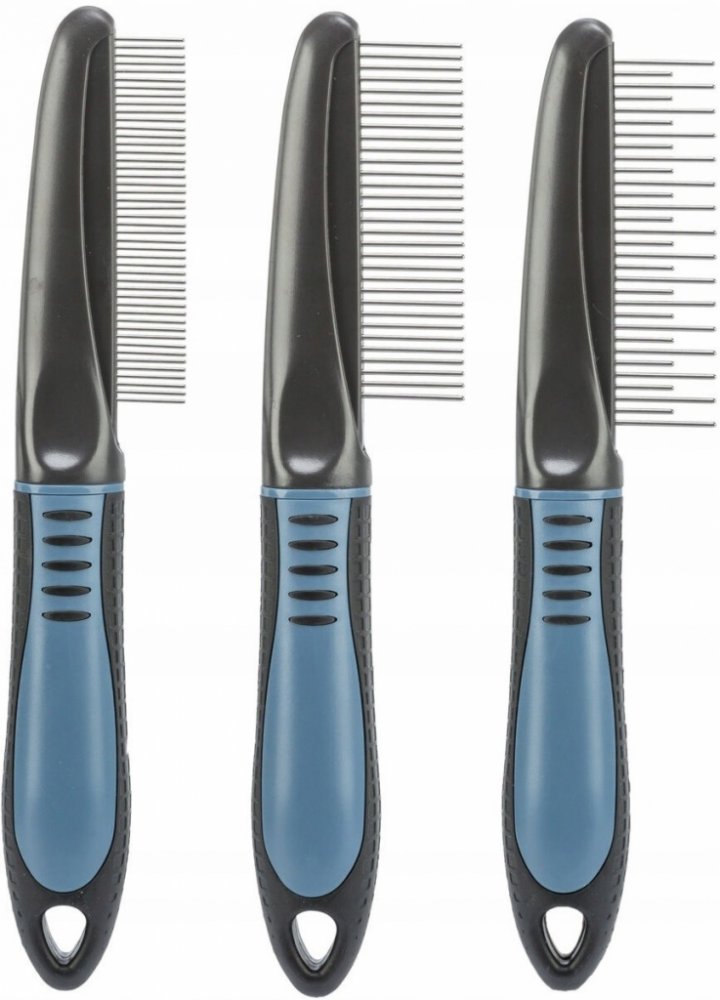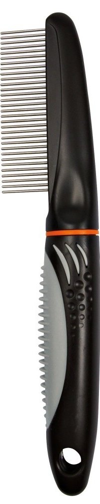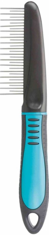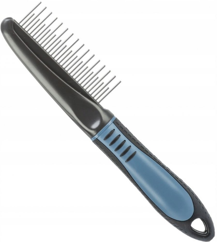 TRIXIE hřeben kombinovaný s rotačními zuby a protiskluzovou rukojetí 22cm. Plastový hřeben s gumovou rukojetí a rotačními zuby. Pro středně dlouhou a dlouhou srst. Zuby hřebenu jsou zaoblené. Hřeben s rotačními zuby zaručí velmi šetrné pročesání i velmi dlouhé srsti. Otáčivé zuby zamezují cuchání srsti a pro Vaše zvířátka tak česání nebude bolestivé. Obrázek je pouze ilustrační.
