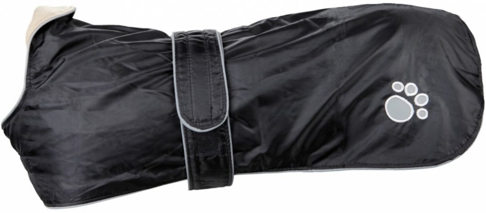 Obleček pro psy s reflexními prvky. Obleček je ušitý z odolného nylonu, zateplený kvalitní flízovou podšívkou. Obleček je ozdoben vzorem psí tlapky a má všité reflexní pásky. Obleček je nastavitelný v oblasti hrudníku se zapínáním na suchý zip. Úchyty na zadní nohy zajišťují správné držení oblečku i při pohybu psa. Rozměry: Délka zad: 80 cm Obvod hrudníku: 70-100 cm Obvod krku: 68-78 cm Materiál: ...
