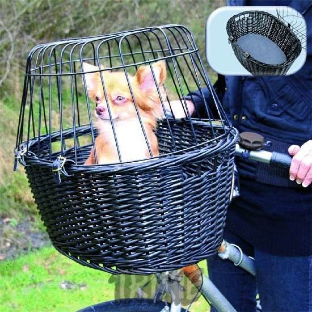 Přepravní proutěný koš pro psa, k připevnění na řidítka kola -nosnost koše 8 kg -koš je vyroben z kvalitního vrbového proutí -pozinkovaný ochranný kryt s plastovým potahem poskytuje při jízdě zabezpečení vašeho psa proti vyskočení -uvnitř koše je polštář semišového vzhled v šedé barvě a poskytuje při jizdě vašemu psímu společníkovi pohodlí, polštář lze prát v ruce do 30°C - koš se upevňuje dvěma háky na řídítka, ideální šířka řídítek je 1,5 cm, na šiřší jej nelze použít Rozměry: 50 x 41 x 35 cm Barva: černá