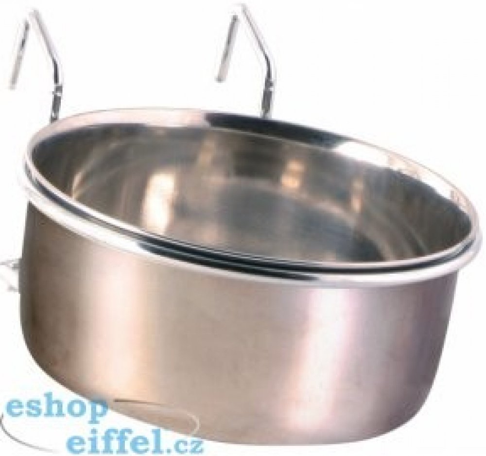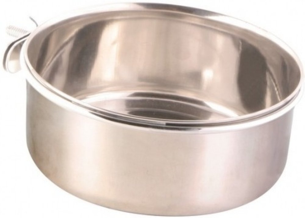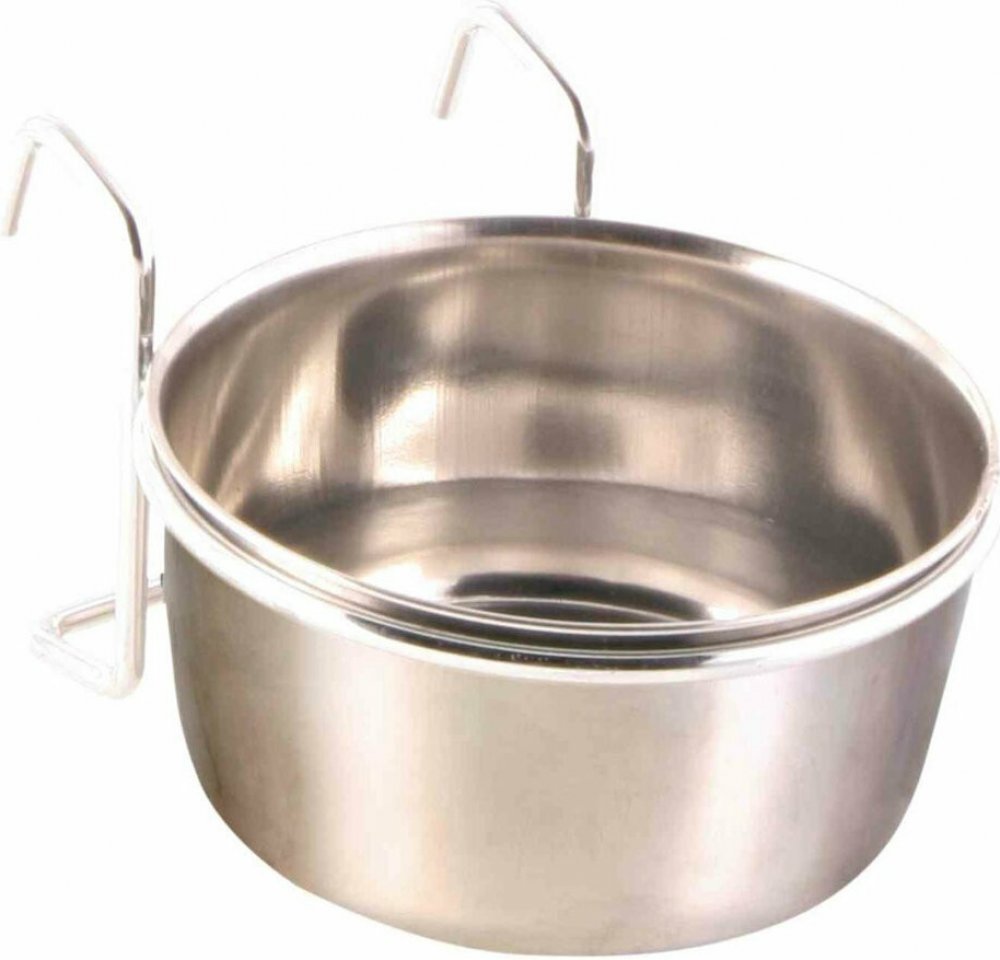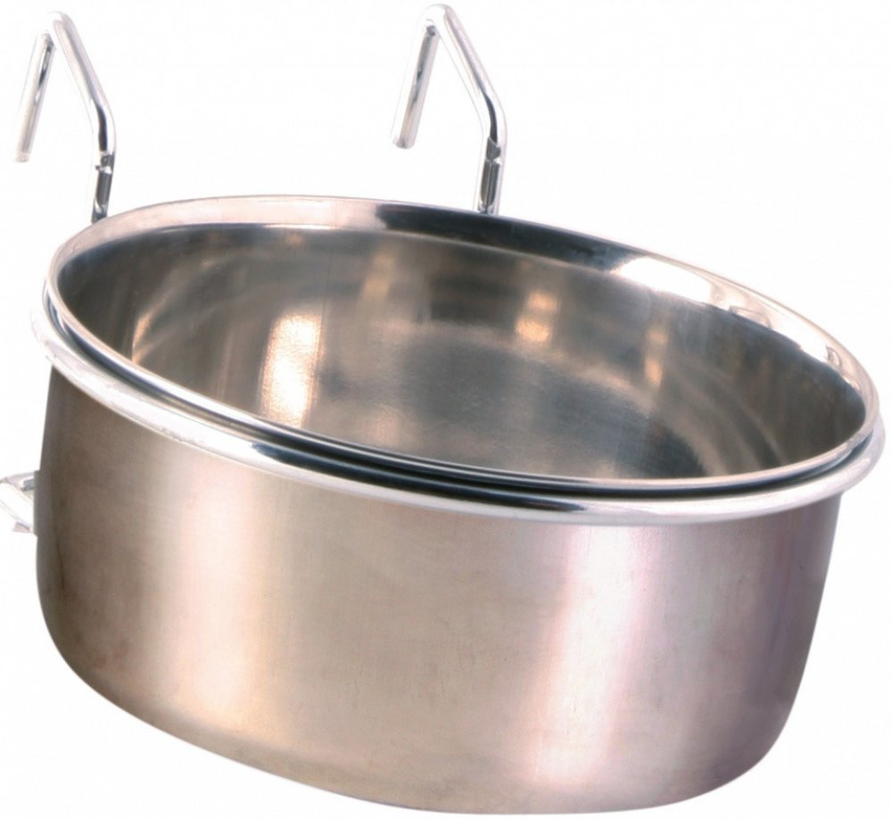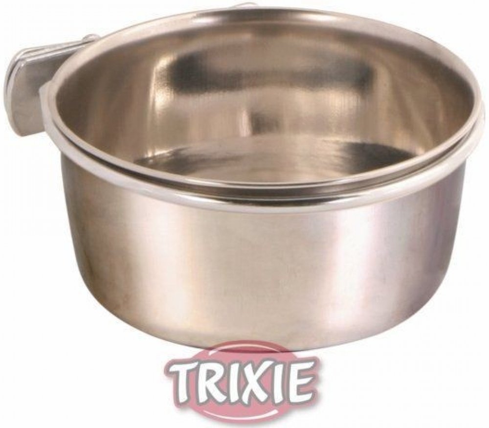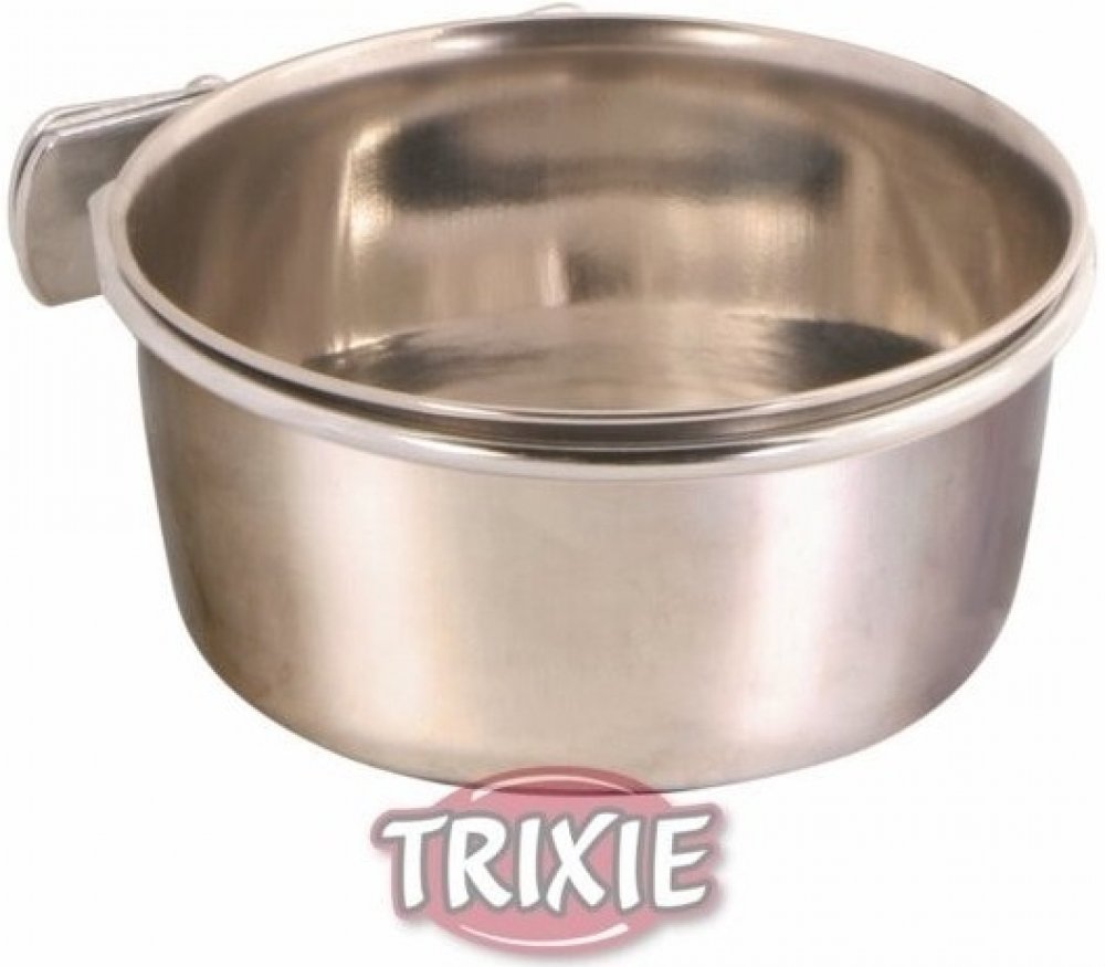 Nerezové krmítko s pevným úchytem do klece 600ml/12cm TRIXIE. Velmi praktické krmítko z nerezu pro papoušky a větší andulky. Rám krmítka poslouží jako bidýlko pro pohodlné krmení. Krmítko má svůj pevný držák se šroubem pro upevnění do klece. Velmi snadno se čistí, lze mýt v myčce na nádobí.