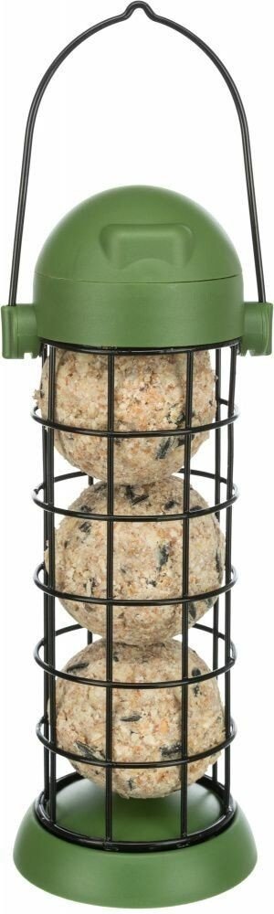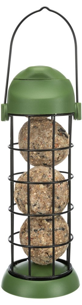 Trixie Krmítko na lojové koule se stříškou závěsné je kovové/plastové venkovní krmítko na lojové koule. Kov je upraven pro venkovní použití.