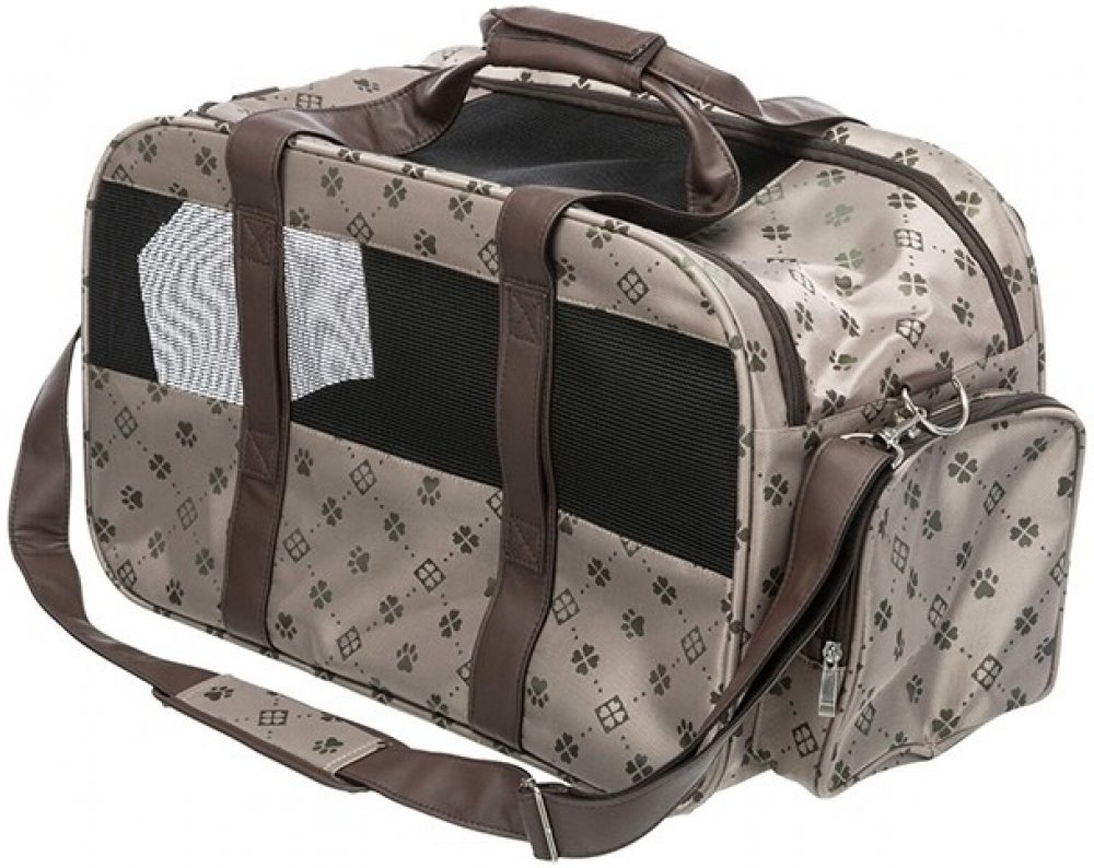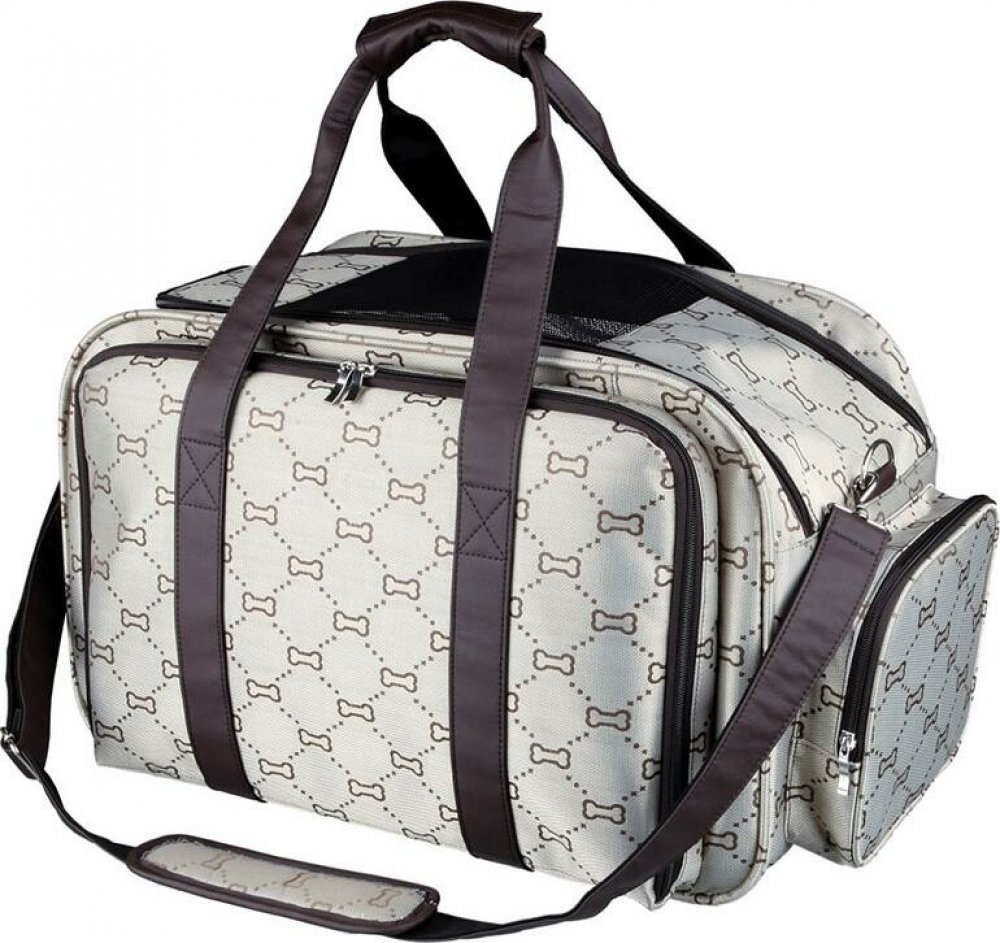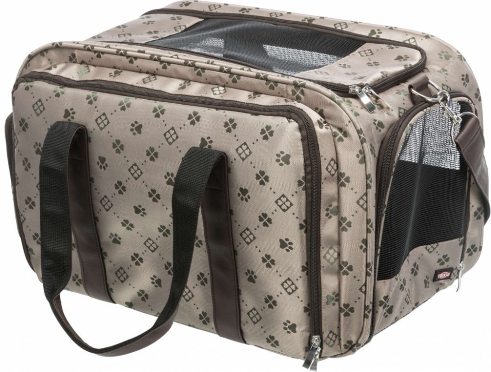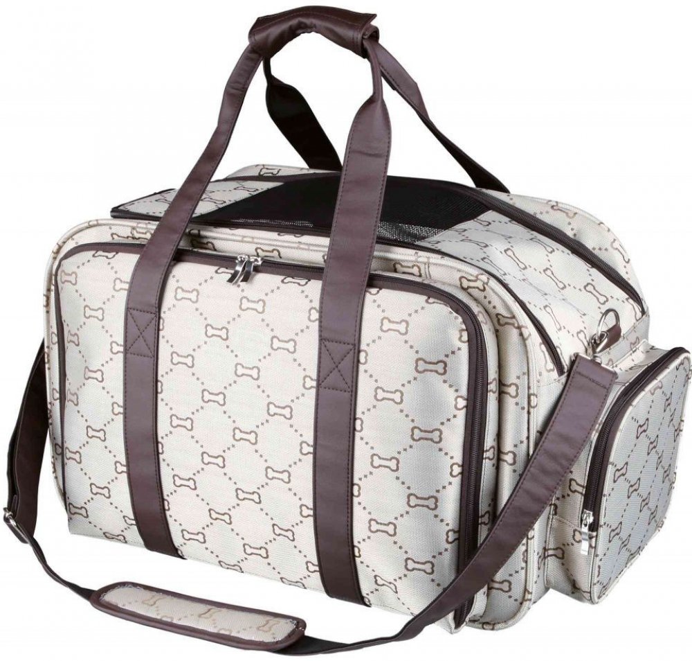 Luxusní, prostorná, cestovní taška Maxima pro psy. Největší výhodou této tašky je, že můžete Vašemu mazlíčkovi, pomocí boční síťované vložky, rozšířit prostor pro ležení. Díky tomu lze tašku využít jako cestovní boudičku. Jistě oceníte také dlouhý popruh pro nošení tašky přes rameno a boční kapsičku na nezbytné drobnosti. Dno tašky je polstrované. Uvnitř najdete krátký popruh, který zabraňuje vyskočení zvířete z otevřené tašky a následnému zranění. Síťované vsadky zajistí dobrou cirkulaci vzduchu.
