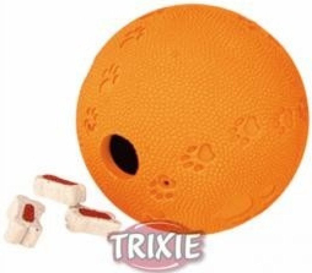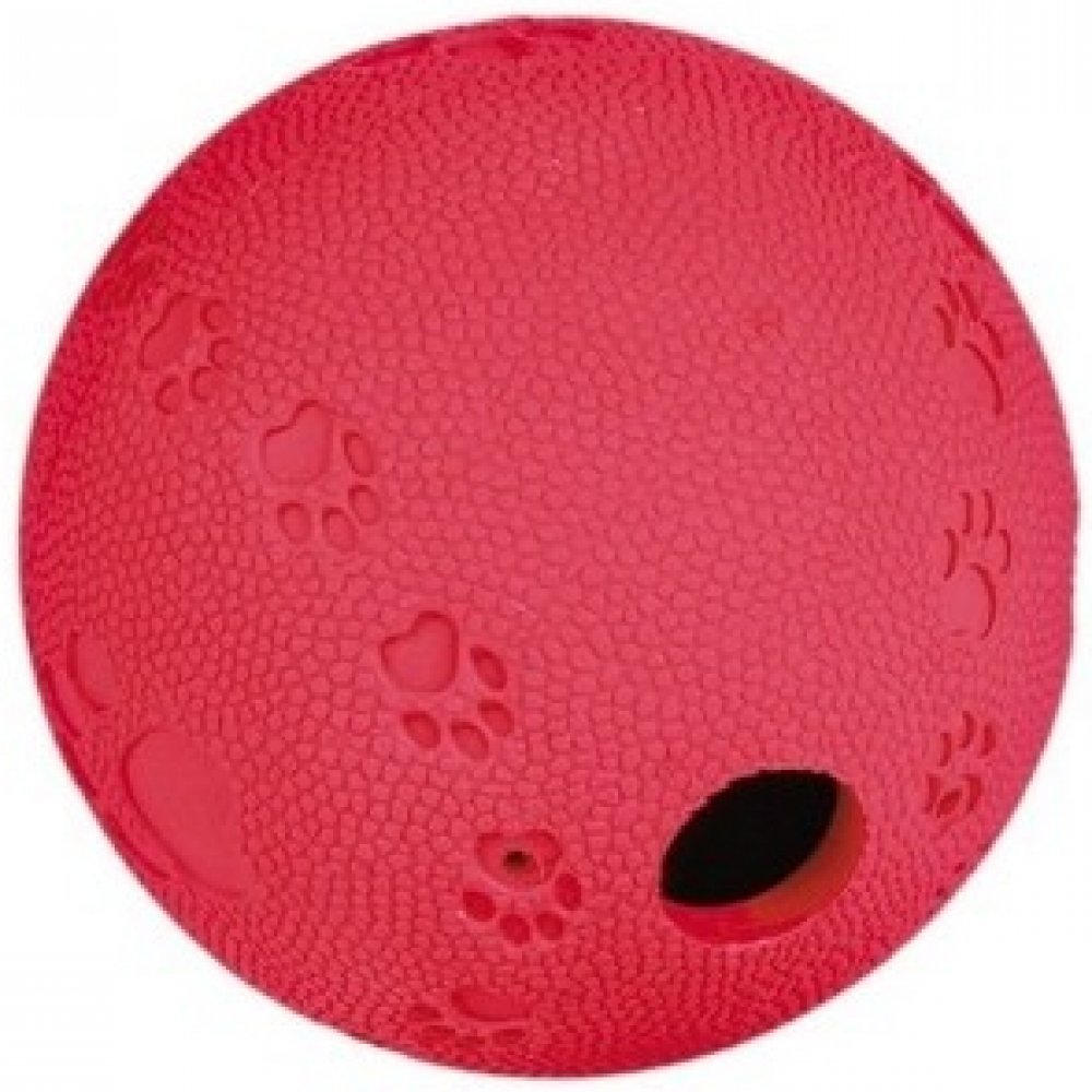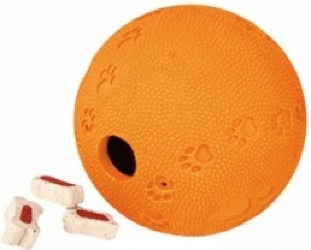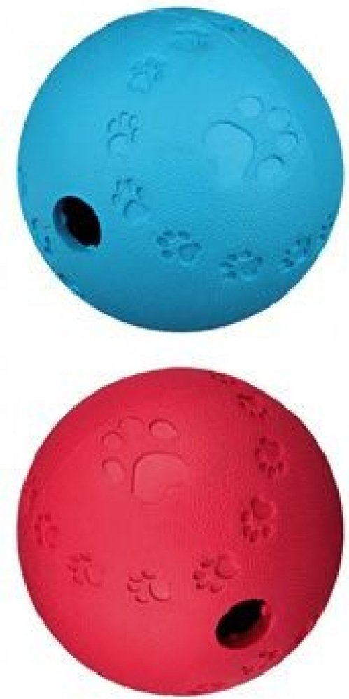 Tento míček je kombinací zábavy a zároveň vzdělávání vašeho pejska. Stačí jen míček naplnit jeho oblíbenými mlsky. Při pohybu po podlaze mlsky vypadávají v okamžiku, kdy se dostane míč otvorem dolů. To jistě vzbudí ve vašem pejskovi zájem a s radostí bude míčkem koulet po podlaze.