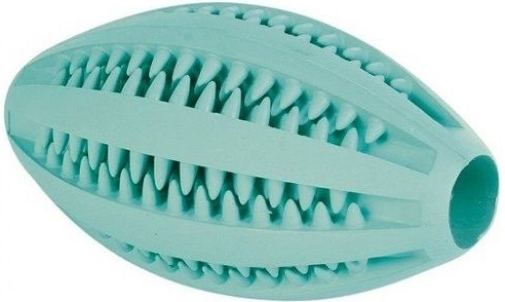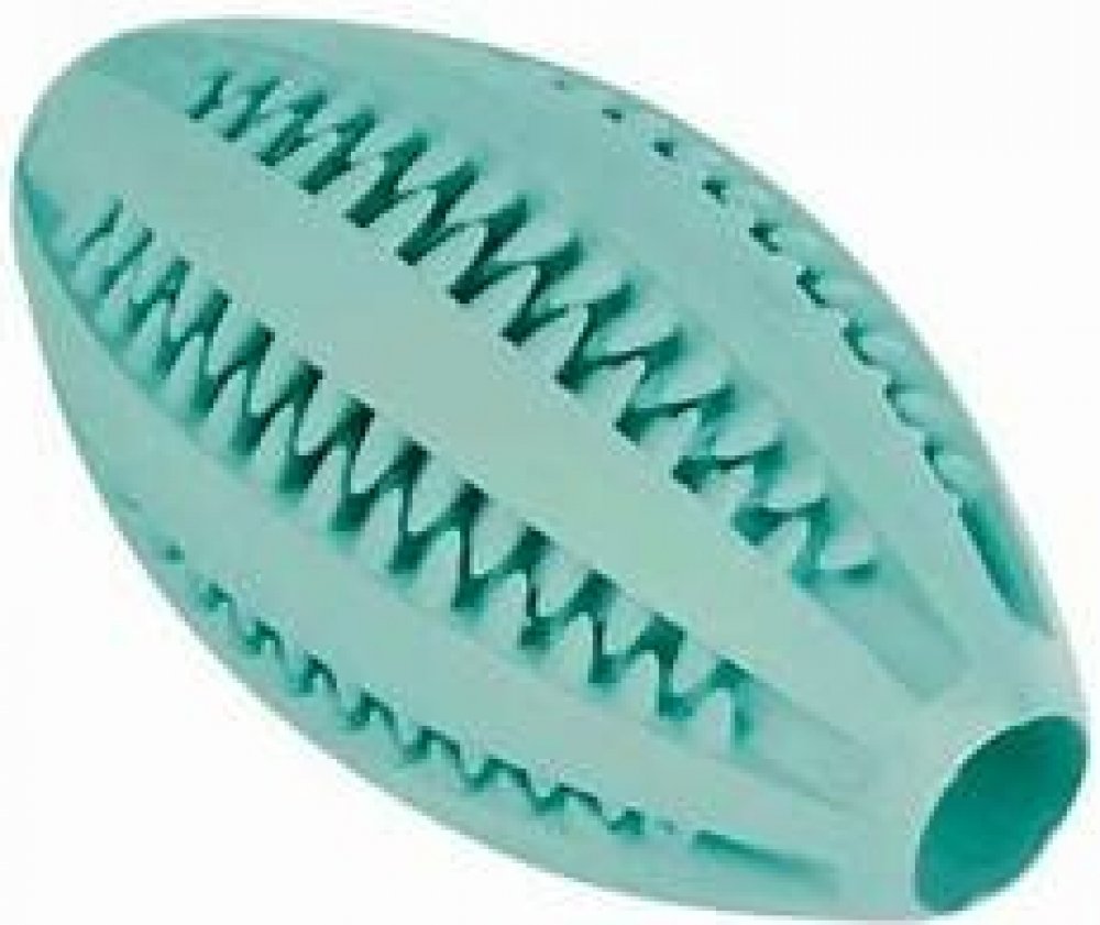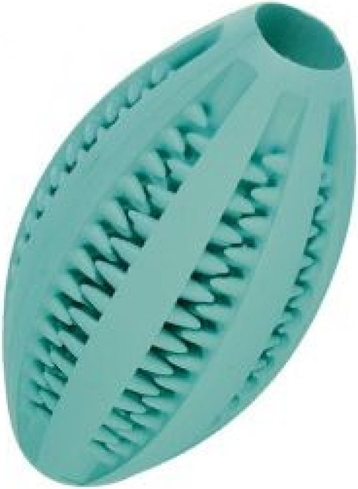 Produkt Dentafun Hračka pes RUGBY s mátou Zelený 11 cm je interaktivní hračka určená k podpoře dentální hygieny vašeho psa. Díky svému designu a složení kombinuje zábavu s péčí o zdraví chrupu. Výhody pro zdraví a kvalitní péči: Podpora dentální hygieny: Speciální výstupky na hračce pomáhají při žvýkání odstraňovat zubní plak a snižovat riziko vzniku zubního kamene. Masáž dásní: Texturovaný povrch jemně masíruje dásně, čímž zlepšuje jejich prokrvení a zdraví. Osvěžení dechu: Příchuť máty přispívá k osvěžení dechu a zvýšení atraktivity hračky pro psa. Bezpečný materiál: Vyrobeno z odolné přírodní gumy, která je šetrná k zubům i dásním a vhodná pro opakované žvýkání. Zábava a stimulace: Hračka podporuje přirozené žvýkací chování psa a zabraňuje nudě, čímž přispívá k jeho psychické pohodě. Pro zajištění optimální hygieny doporučujeme pravidelně hračku kontrolovat na opotřebení a dle potřeby ji vyměnit. V případě dalších dotazů si neváhejte objednat konzultaci prostřednictvím karty mazlíčka.