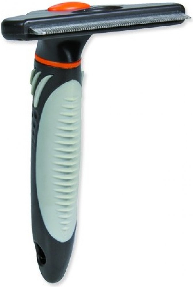 Hřeben pro psy s vyměnitelnou hlavou. Hlava se snadno vyměňuje pomocí snap mechanismu na rukojeti. Vhodný pro dlouhosrsté, krátkosrsté a hrubosrsté psy. Hřeben má plastovou rukojeť s protiskluzovou gumou. Efektivně odstraňuje odumřelou srst.