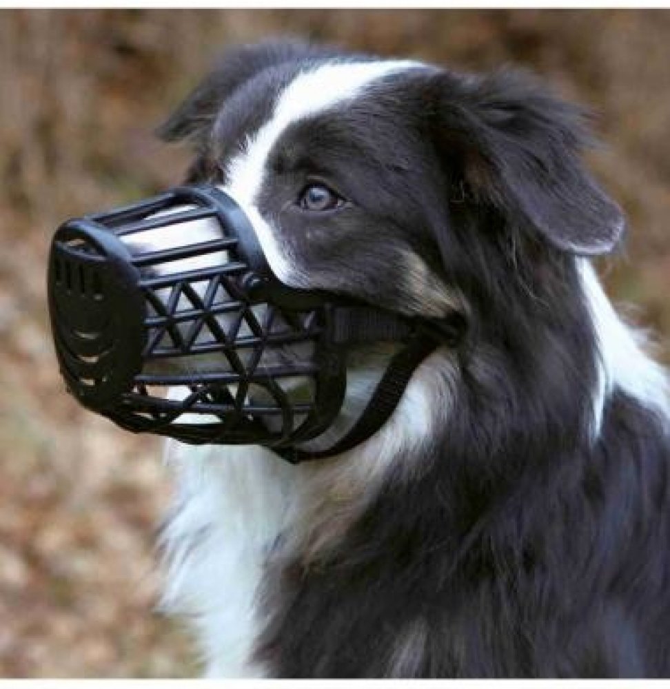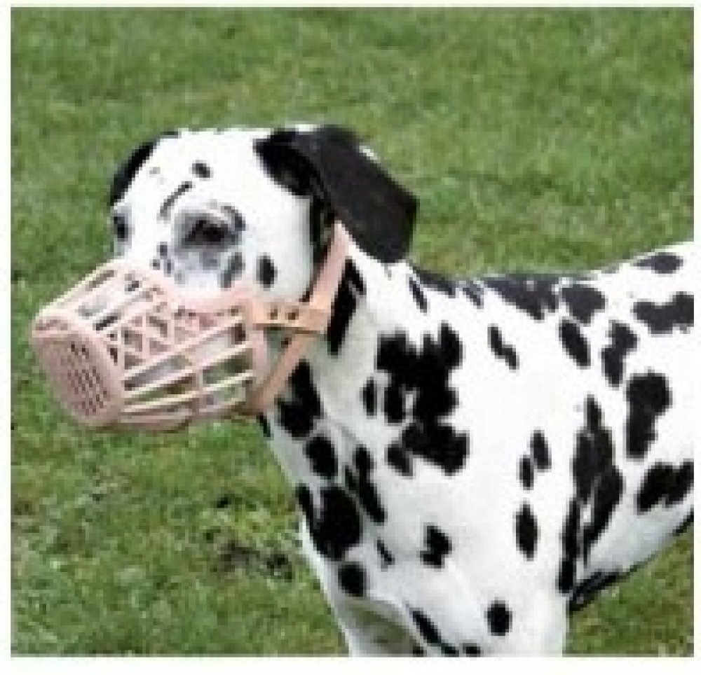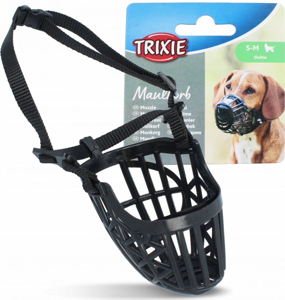 Náhubek je vyroben z odolného plastu s koženými řemínky pro upevnění na hlavu psa. Náhubek má husté mřížky a zabraňuje psovi ve žraní nežádoucích nalezených odpadků apod.