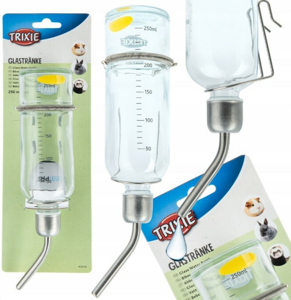 Skleněná napáječka s kovovým pítkem pro morčata 250 ml - Skleněná napáječka s kovovým pítkem pro morčata 250 ml - * s kovovým uzávěrem/pítkem\\