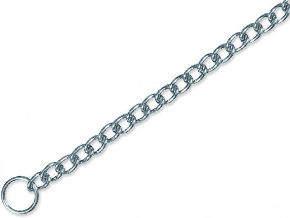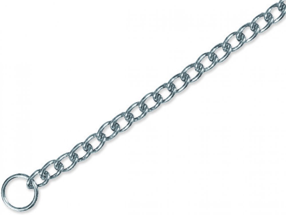 Obojek řetěz stahovací pro psy. Vyrobený z pochromovaného kovu. Ideální pomůcka pro výcvik psa. Zejména pro dlouhosrsté psy. Vhodný pro velká plemena psů. Z kvalitního materiálu Chromový Pro sportovní kynologii Oválná oka Upozornění: Při nákupu stahovacích a polostahovacích obojků měřte obvod nejširšího místa na hlavě. Pamatujte, že přes uši jde obojek vždy snáz, než zpět.