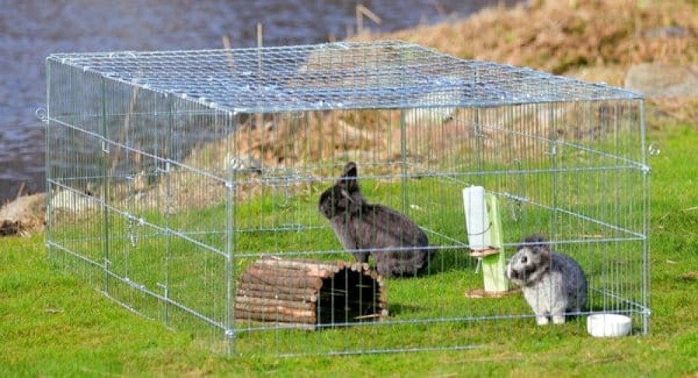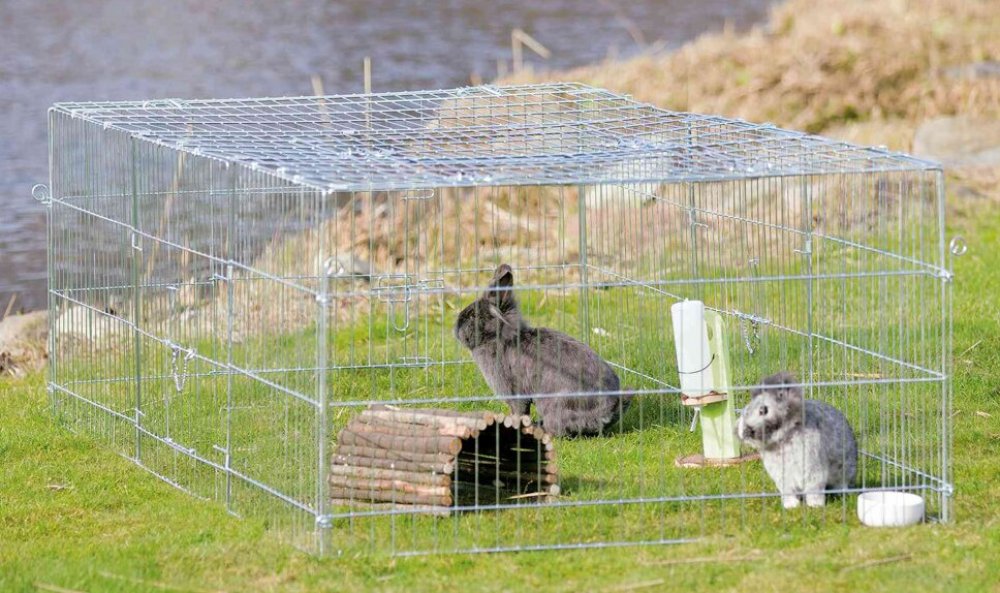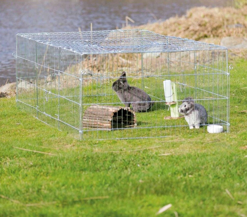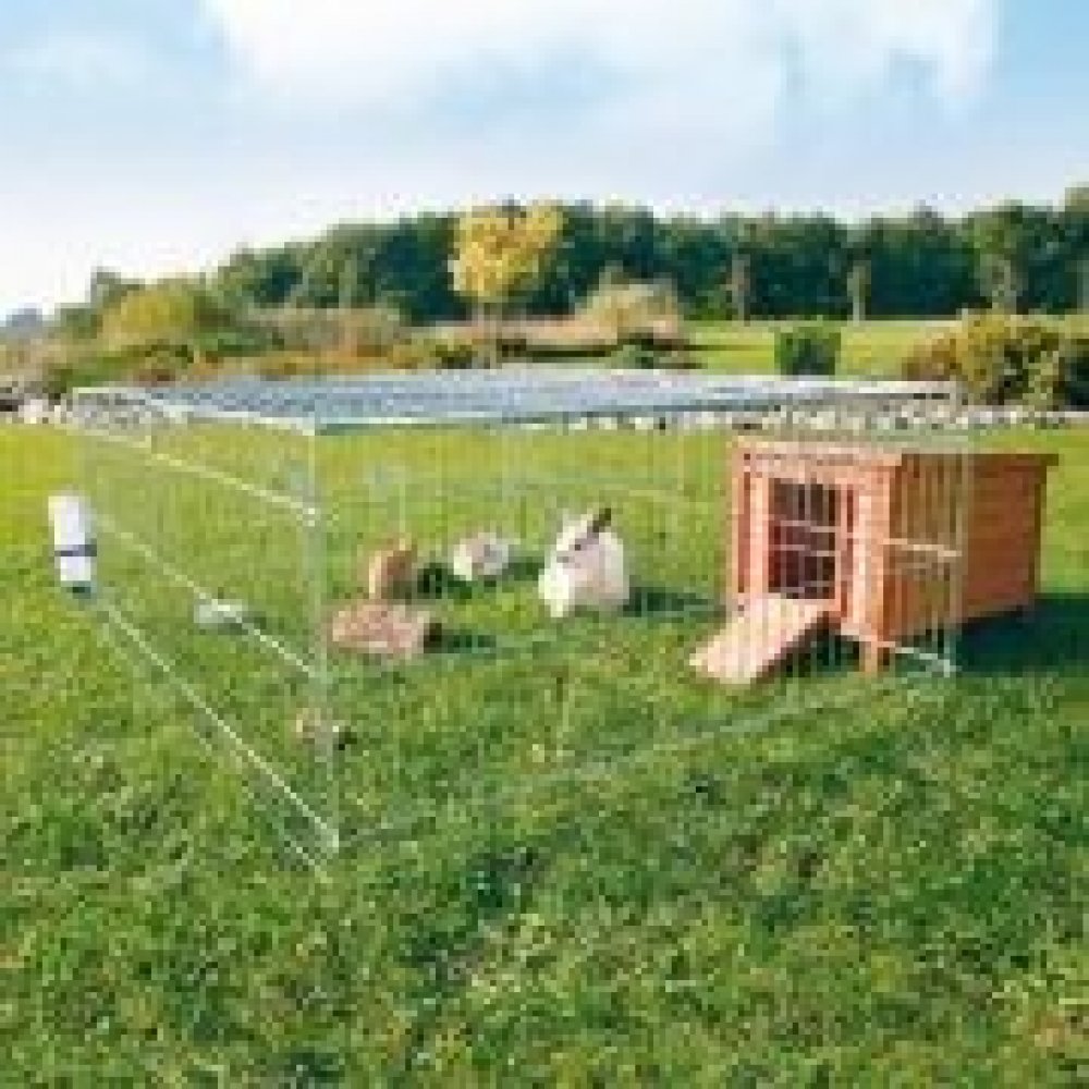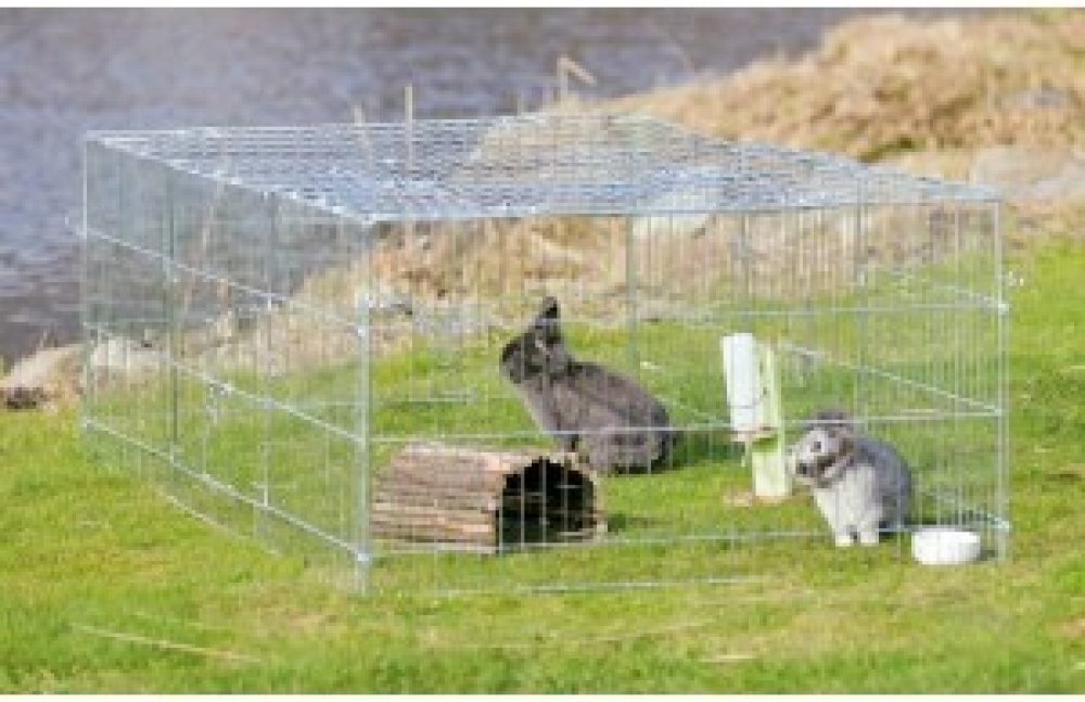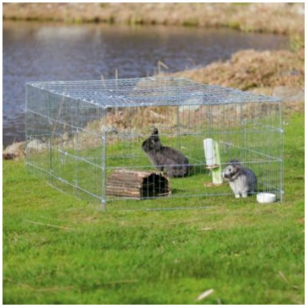 Trixie Freilaufgehege mit Abdeckung - tato pozinkovaná ohrádka zajistí Vašemu zvířátku maximální možnou ochranu a pohodlí. Snadná montáž. Ohrádka je vybavena dvířky v horní mříži, dvěma padacími dvířky, ke kterým můžete přistavit domeček, a velkými bočními dvířky. Pevná horní mříž zabraňuje vyskočení zvířátka a zároveň ho chrání před napadaní kočkou nebo dravými ptáky. Domek Natura vhodný k přistavění k této ohrádce se dá dokoupit zvlášť. Najdete jej v sekci Domky a hnízda. Nenechávejte zvířátko v ohrádce bez ochrany proti slunci! Zvířátko musí mít vždy možnost schovat se do domečku.