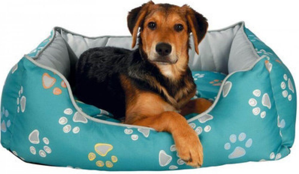 Rozměry: 55 x 45 cm Barva: Černá s motivem tlapek Materiál: Polyester, plyš, pěnové polstrování