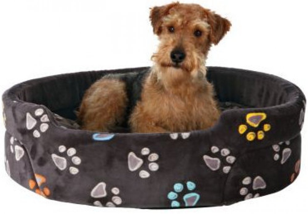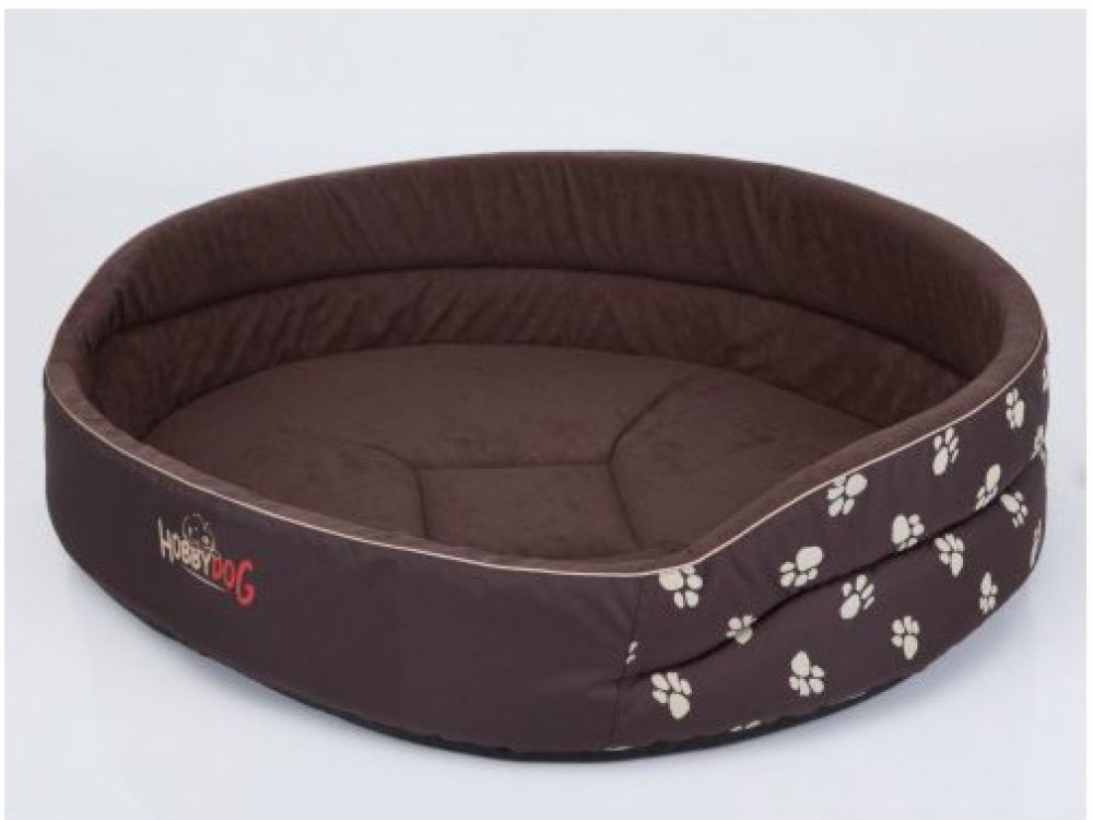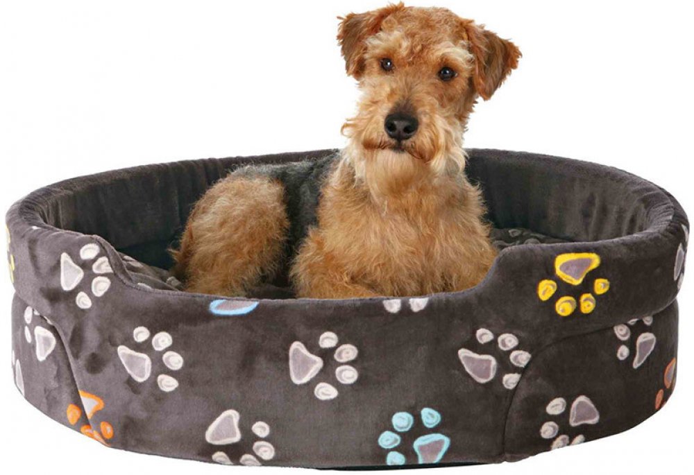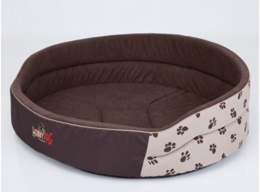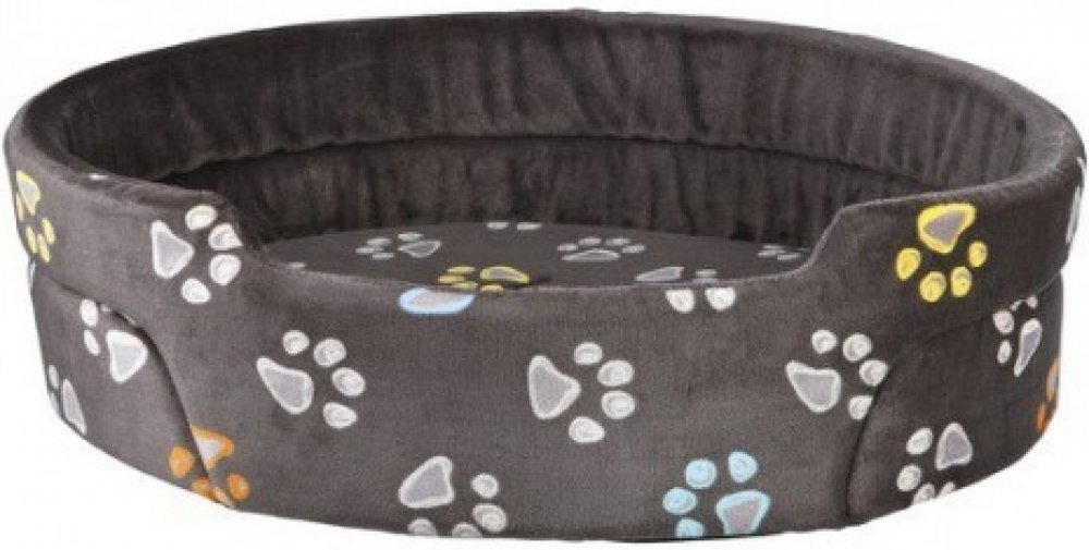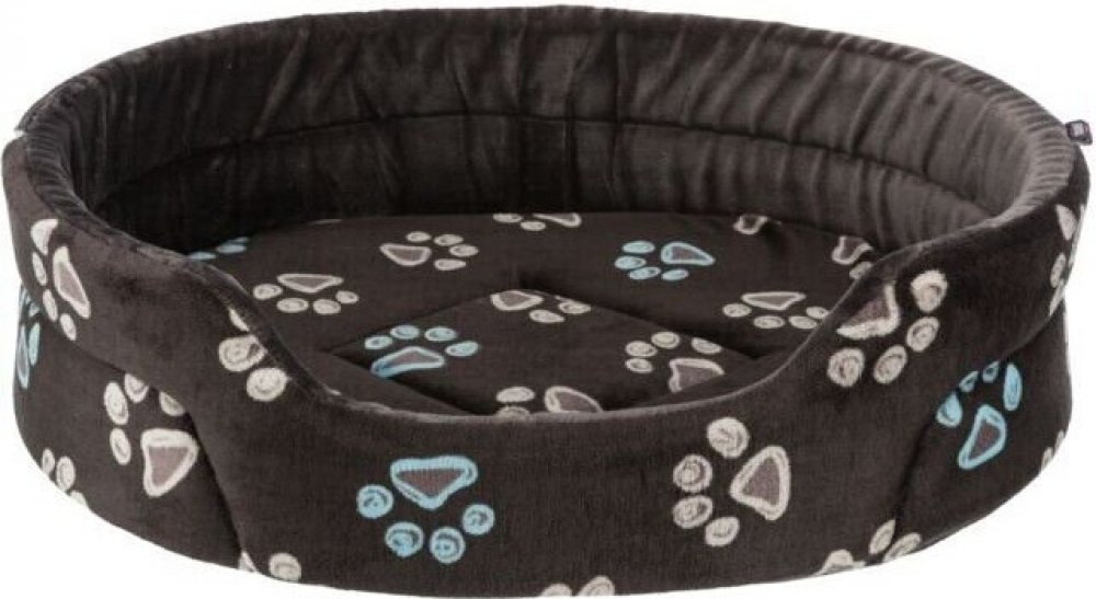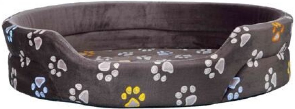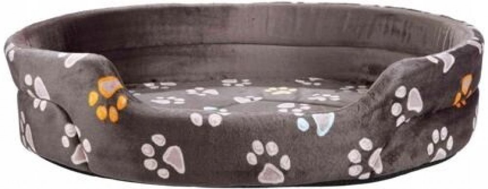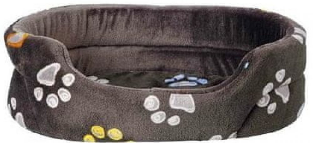 Oválný pelech JIMMY 55 x 45 cm taupe-šedý s tlapkami