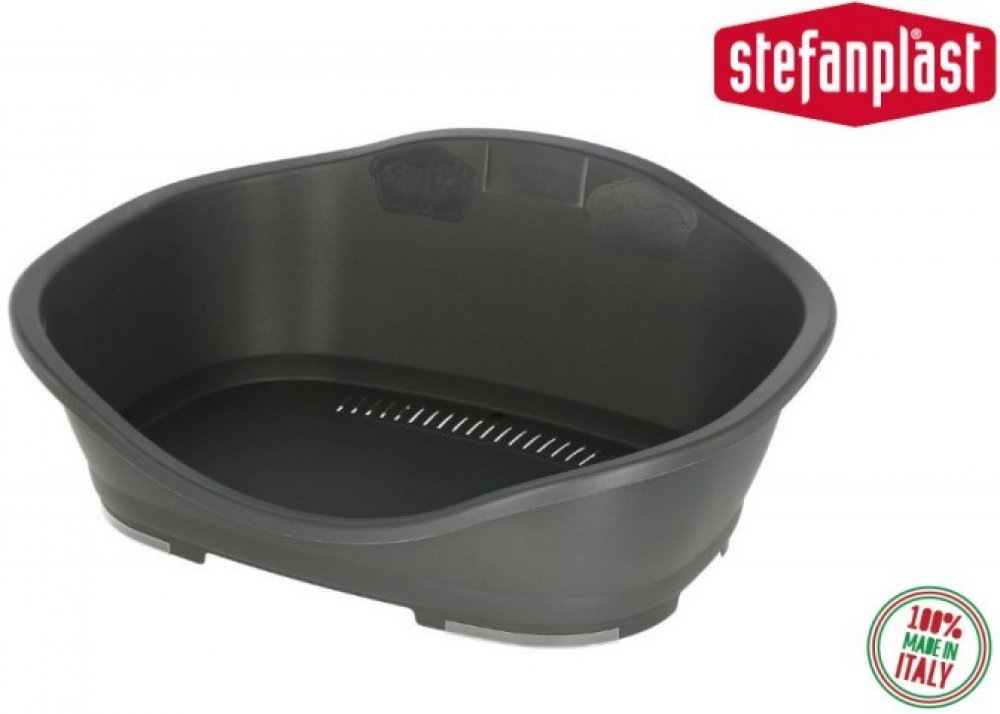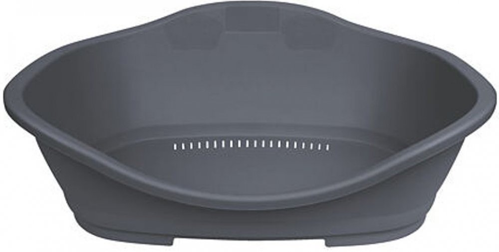 Pelech plastový 88x62x35,5 cm, šedý Plastový pelech pro psy SLEEPER 4 o rozměrech 88x62x35,5 cm, v elegantním šedém provedení, nabízí praktické a odolné řešení pro pohodlí vašeho psa. Tento pevný pelech je vyroben z kvalitního plastu, který je snadno omyvatelný, což zajišťuje jednoduchou údržbu a dlouhou životnost. Větrací otvory na spodní straně pelechu podporují cirkulaci vzduchu a zabraňují hro...