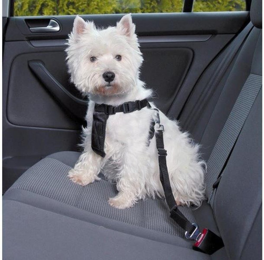 Chrání psa i celou posádku auta při jízdě. V případě nehody chrání psa před zraněním. Lze připnout i na vodítko. Tento ochranný postroj je velmi bezpečný, pohodlný, nastavitelný. Uchycuje se do úchytného systému pro bezpečnostní pásy. Může být použit také jako obyčejný postroj. Před nainstalováním pásu do auta se přesvědč
