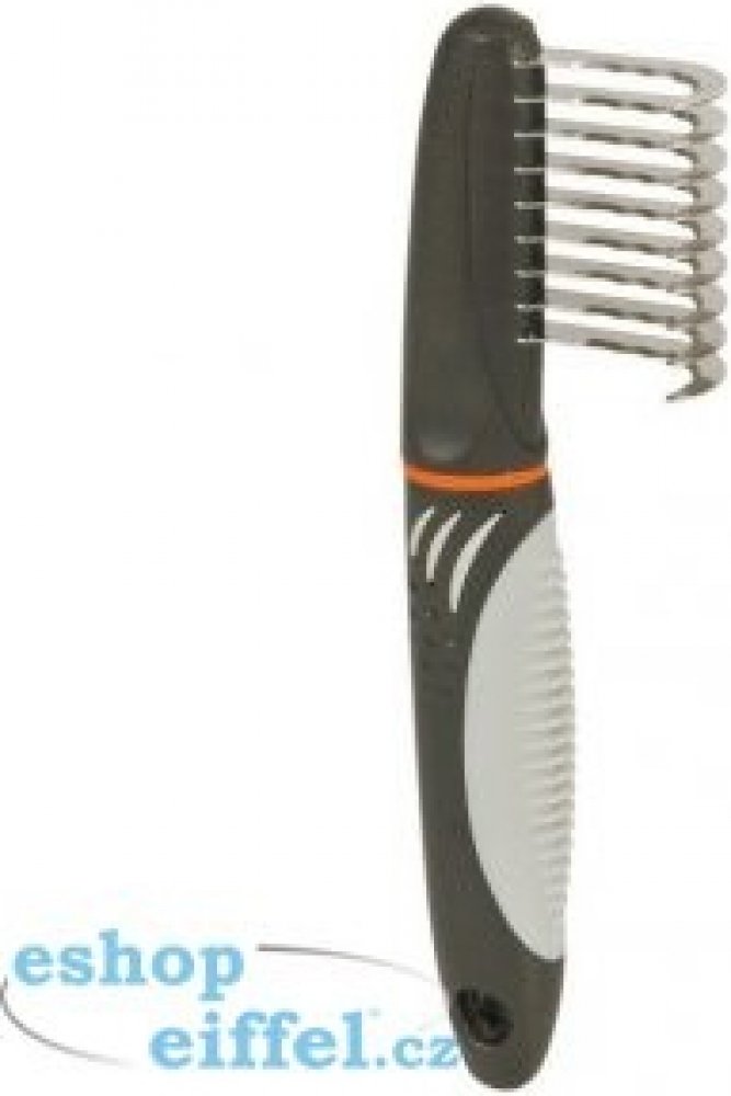 Prořezávač se zahnutými zuby je vhodný i pro kočičky s dlouhou srstí, jemně a bezbolestně z ní odstraňuje uzlíky a zacuchané chlupy a čistí srst. Plastové držadlo se drží příjemně v ruce, zahnuté zubaté výstupky krásně projdou srstí, pročistí ji a zbaví zacuchaných chlupů. Prořezávač používejte pouze na suchou srst, mokré chlupy se snadno lámou.