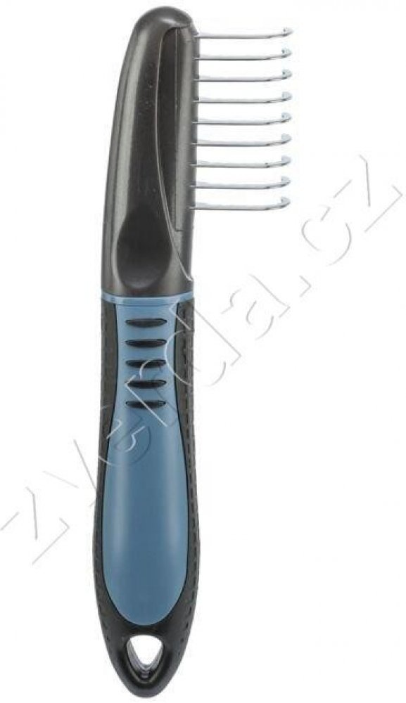 Prořezávač se zahnutými zuby je vhodný i pro kočičky s dlouhou srstí, jemně a bezbolestně z ní odstraňuje uzlíky a zacuchané chlupy a čistí srst. Plastové držadlo se drží příjemně v ruce, zahnuté zubaté výstupky krásně projdou srstí, pročistí ji a zbaví zacuchaných chlupů. Prořezávač používejte pouze na suchou srst, mokré chlu...