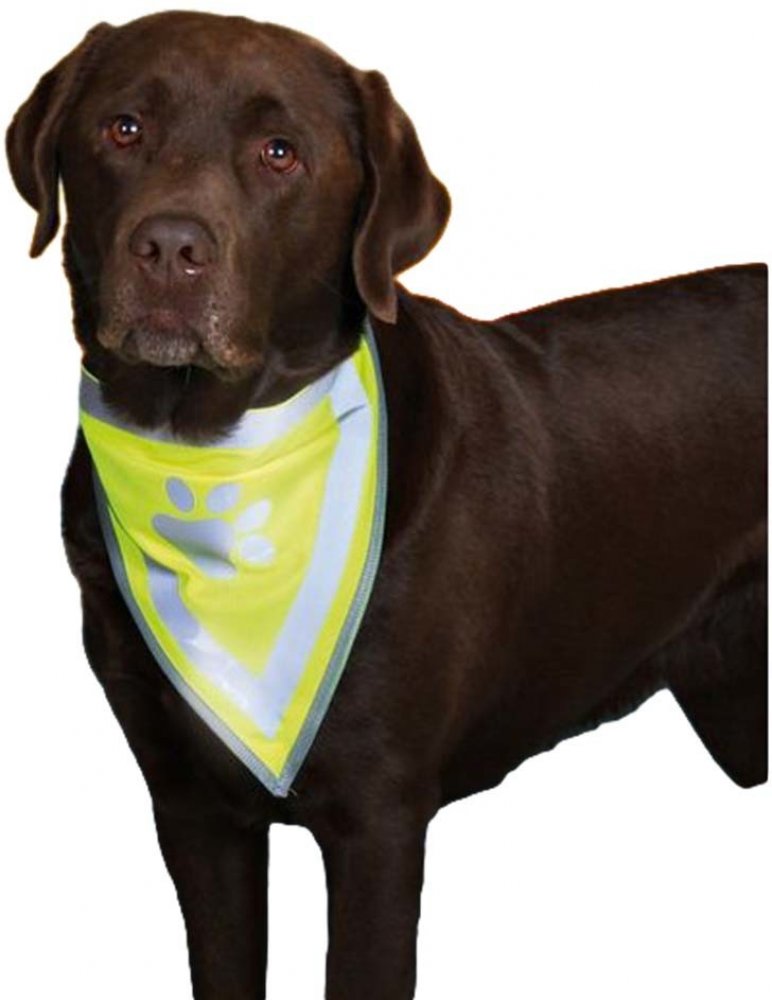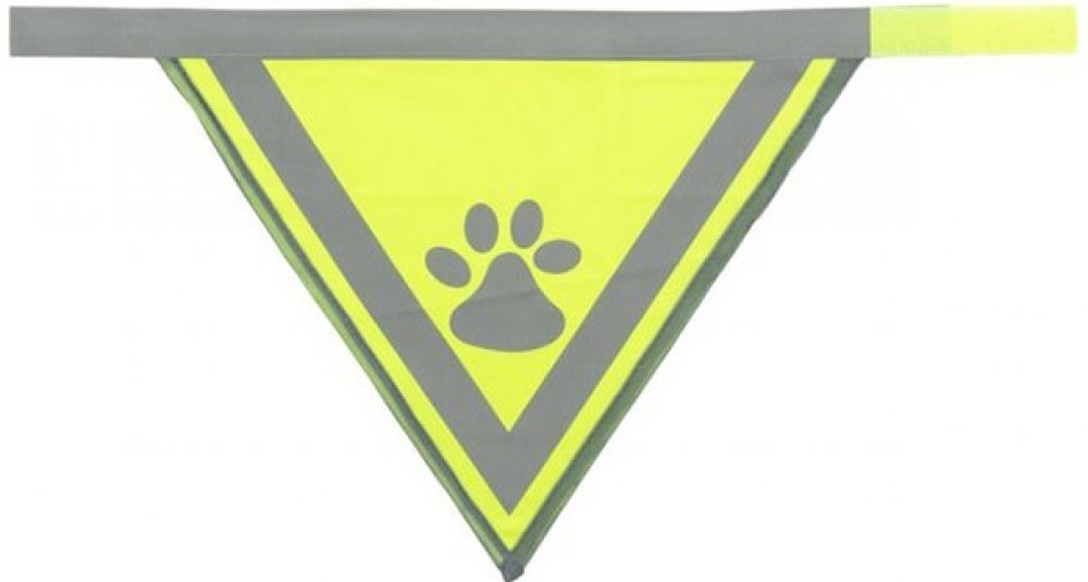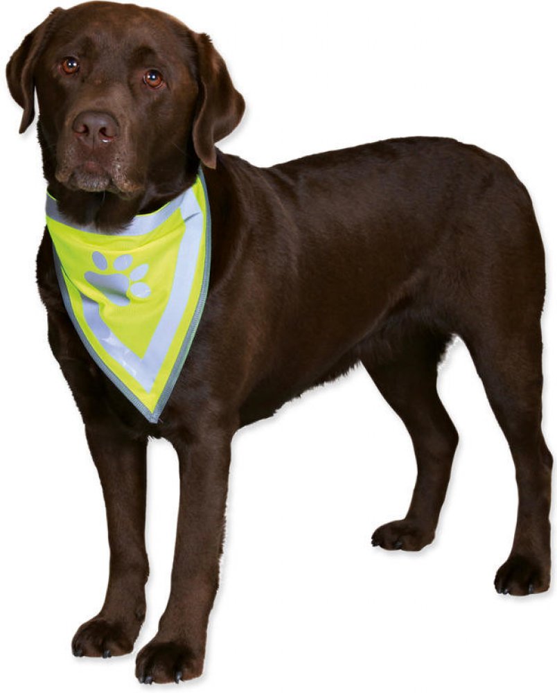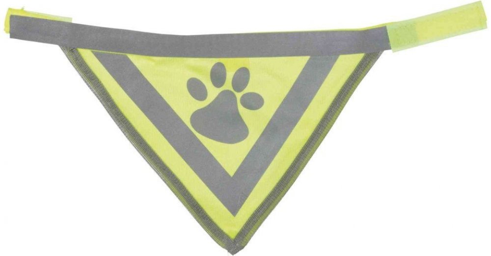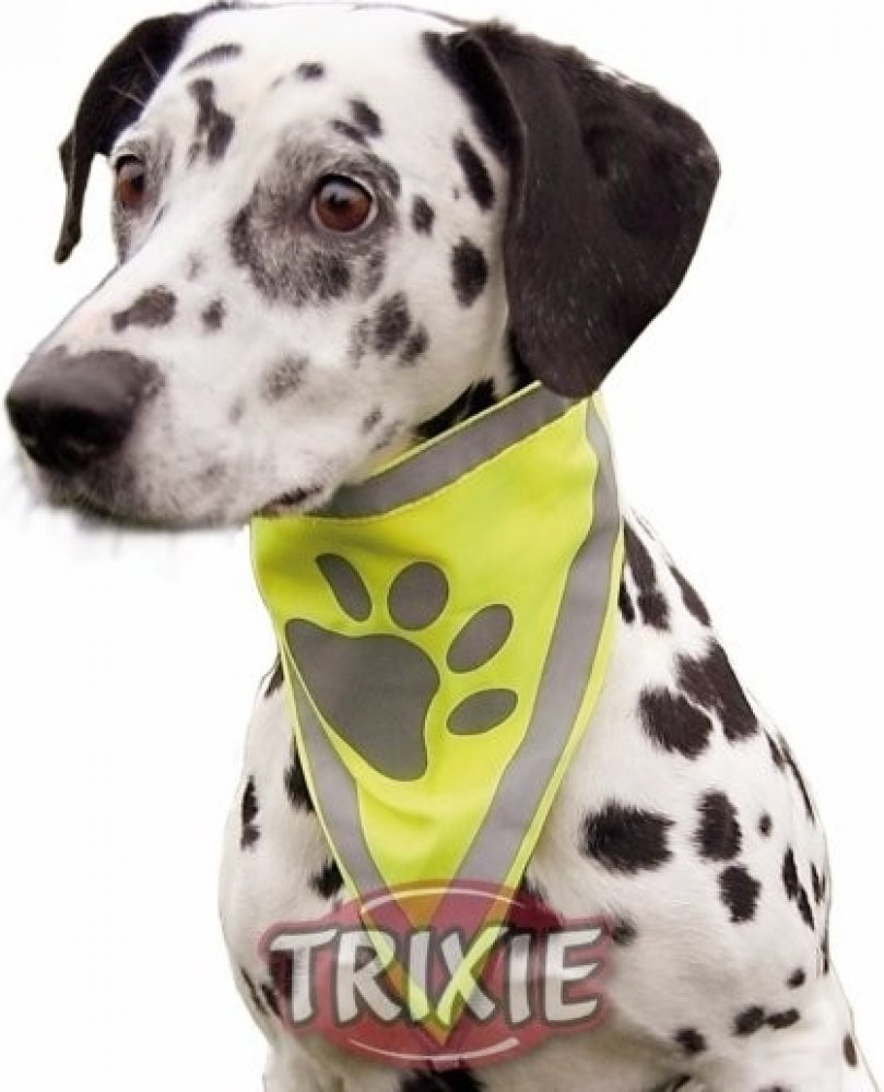 Bezpečnostní šátek Trixie je vyroben z polyesteru a zlepšuje viditelnost psa v šeru, ve tmě nebo v jinak zkomplikovaných viditelnostních podmínkách. Šátek je neonově žlutý a disponuje reflexními proužky a reflexním prvkem v podobě otisku tlapky. Tento doplněk pro lepší viditelnost můžete psovi nasadit samostatně nebo jím doplnit jakýkoliv obleček pro psa...