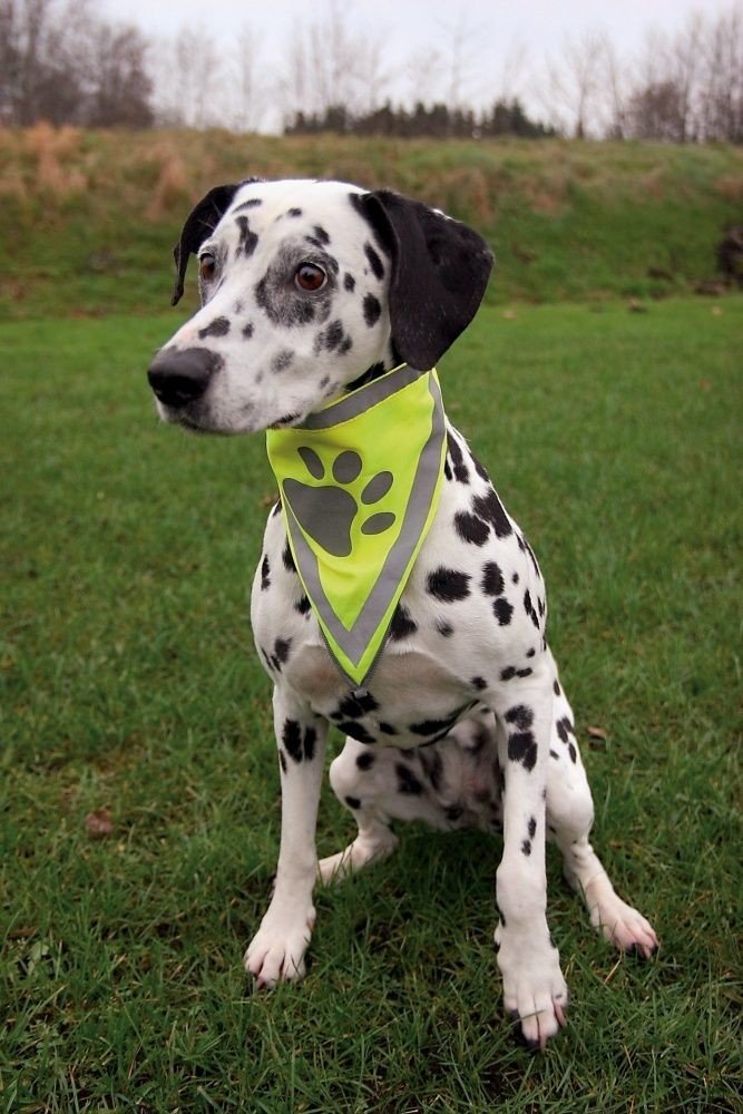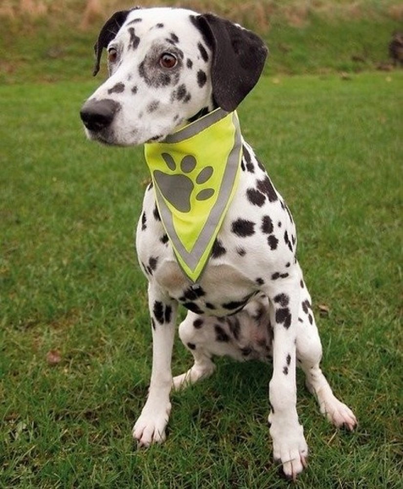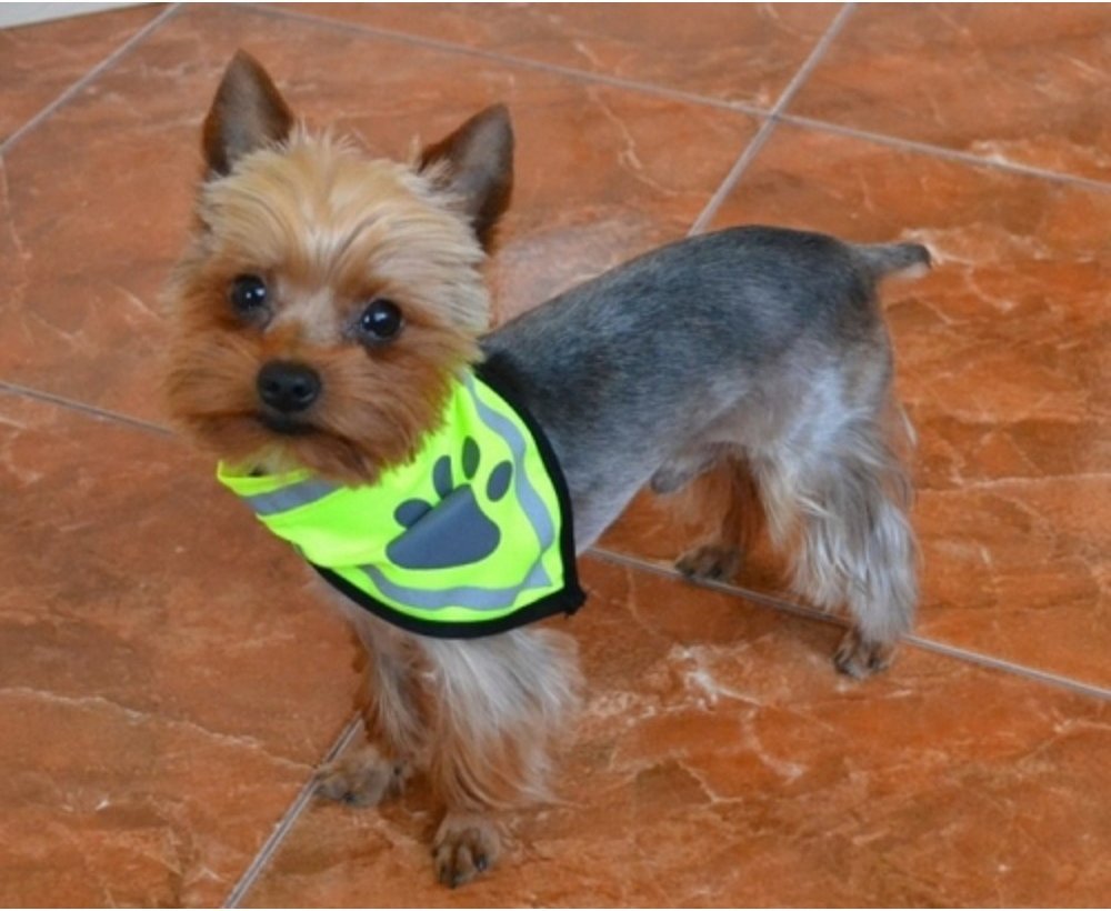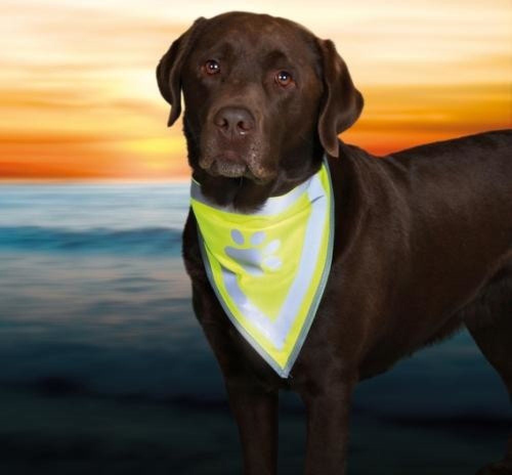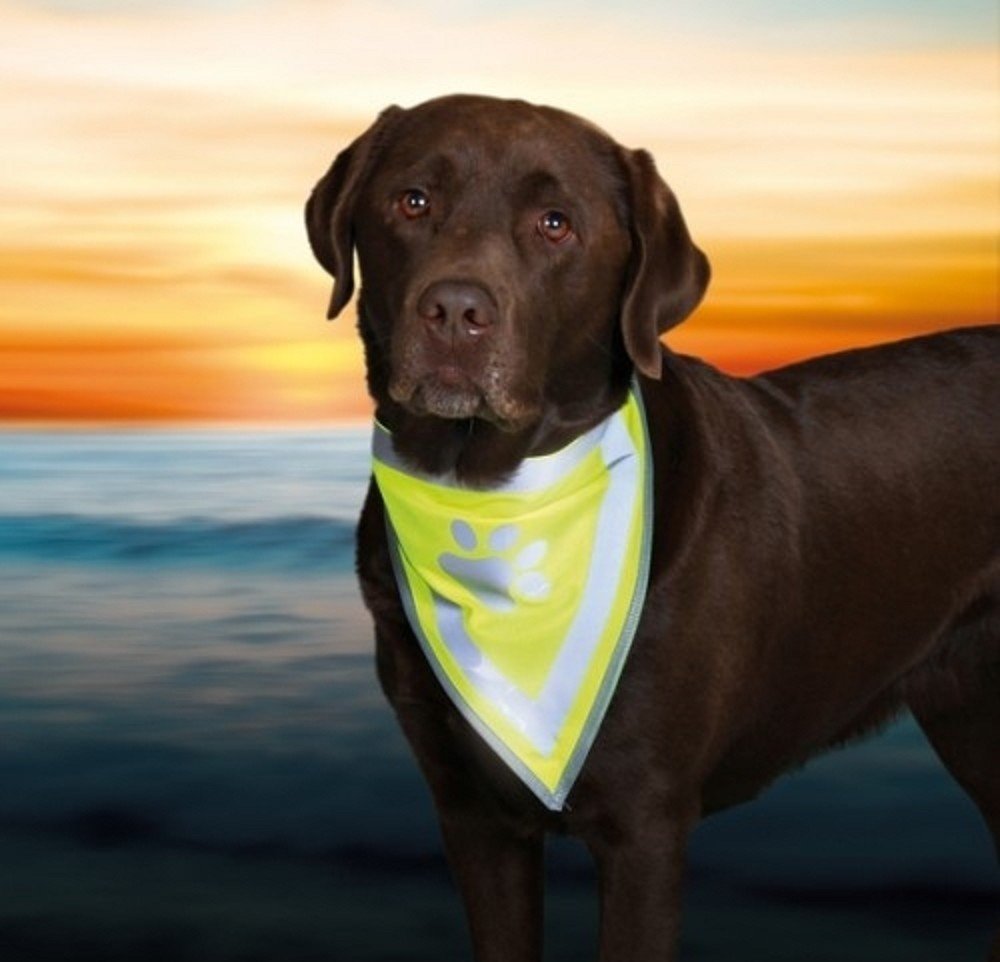 Bezpečnostní šátek Trixie je vyroben z polyesteru a zlepšuje viditelnost psa v šeru, ve tmě nebo v jinak zkomplikovaných viditelnostních podmínkách. Šátek je neonově žlutý a disponuje reflexními proužky a reflexním prvkem v podobě otisku tlapky. Tento doplněk pro lepší viditelnost můžete psovi nasadit samostatně nebo jím doplnit jakýkoliv obleček pro psa...