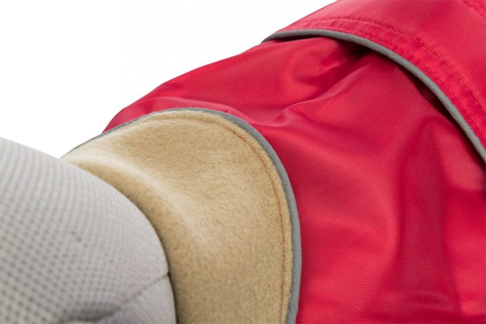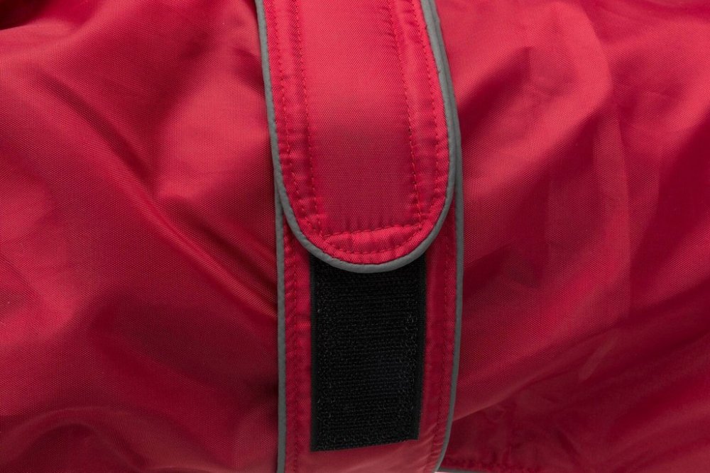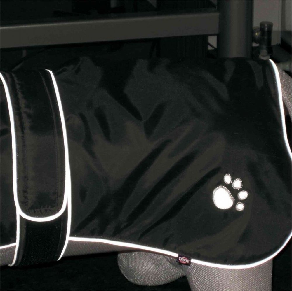 Vnitřní strana oblečku je z velmi měkkého flauše a vnější strana z nylonu, který lze snadno očistit vlhkým hadříkem. V části z boku u zadečku je na vestě vyšitá psí tlapka po jejímž obvodu je reflexní šití, které zvyšuje viditelnost zvířete i za šera a tmy. Vestu lze v oblasti hrudníku nastavit pomocí zapínání na suchý zip. Správné nasazení oblečku na pejska zajišťují úchyty na zadní nohy, díky kterým vesta bude sedět, tak jak má. Zateplený obleček pro psy je možné prát v pračce. Pro pohodlné nošení je potřeba obleček dobře upevnit kolem krku, kolem hrudníku a i za zadní nohy.