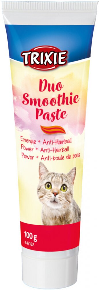 Trixie Duo Smoothie energetická pasta proti chupovým bezoárům je ideální svačinka pro vaši kočku. Tento lahodný krém je nejen pochoutkou k olíznutí, ale také ideálním způsobem, jak svému miláčkovi dopřát malou pochoutku mezi jídly. Díky vysokému obsahu energie je ideální pro aktivní kočky, které potřebují extra dávku energie. Další předností pasty Trixie Duo Smoothie je, že usnadňuje podávání léků...