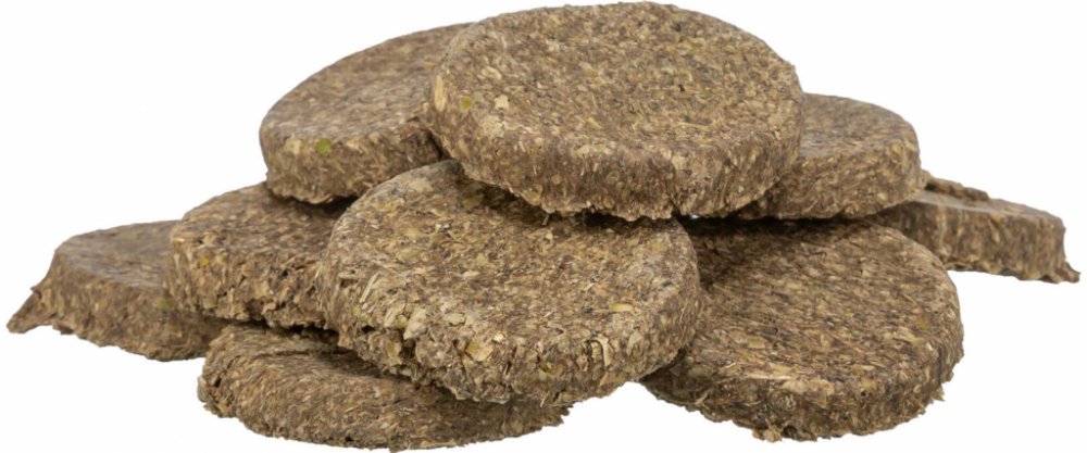 Složení: hrachové vločky, seno z horské louky, řepkový olej, pampeliška (5 %), petrželová nať
