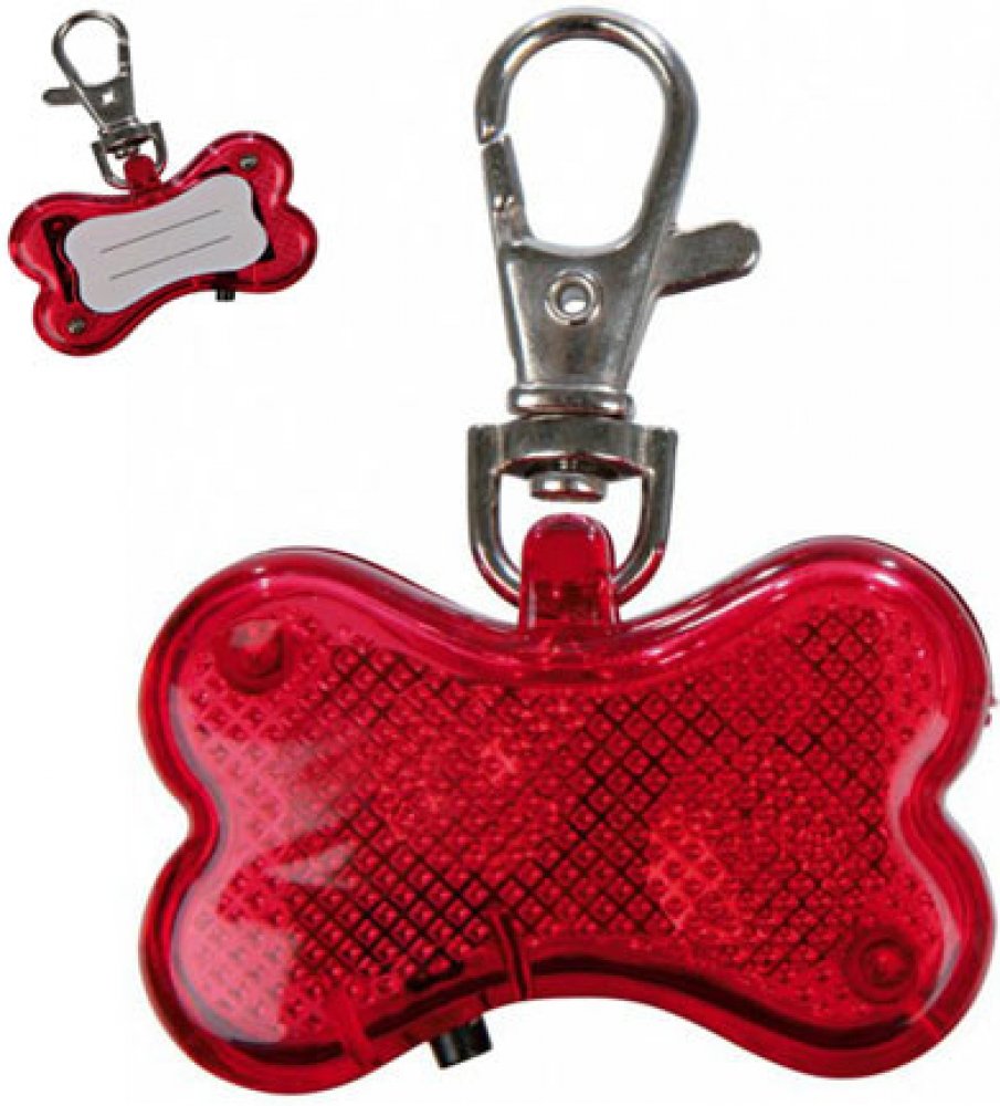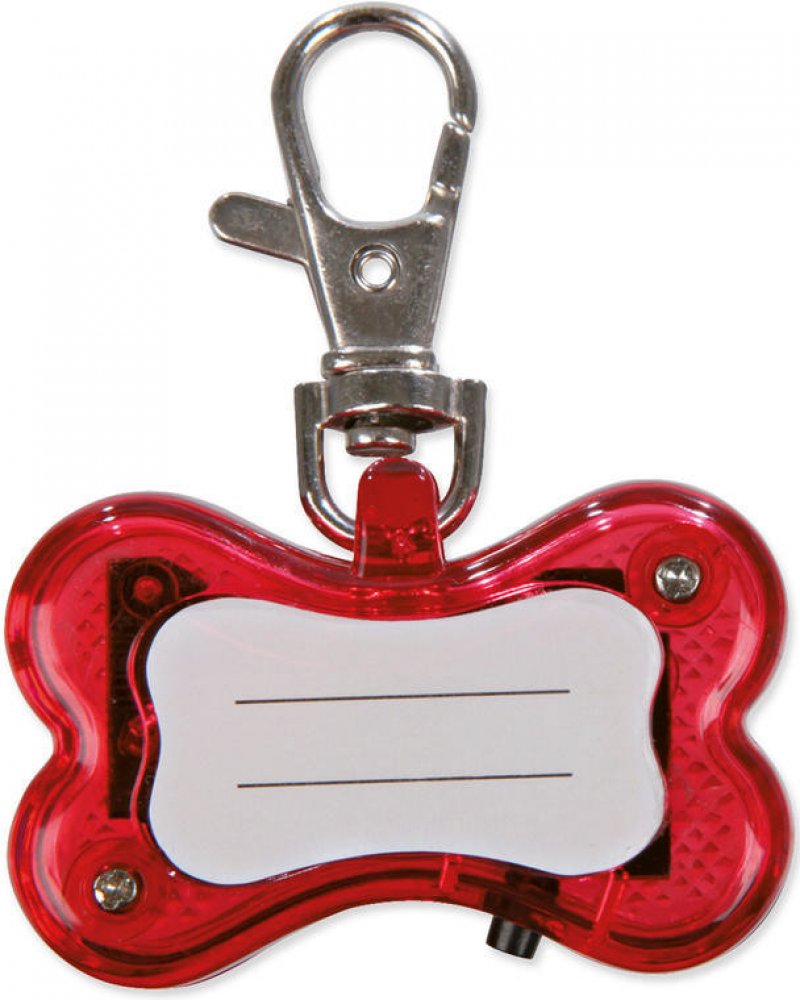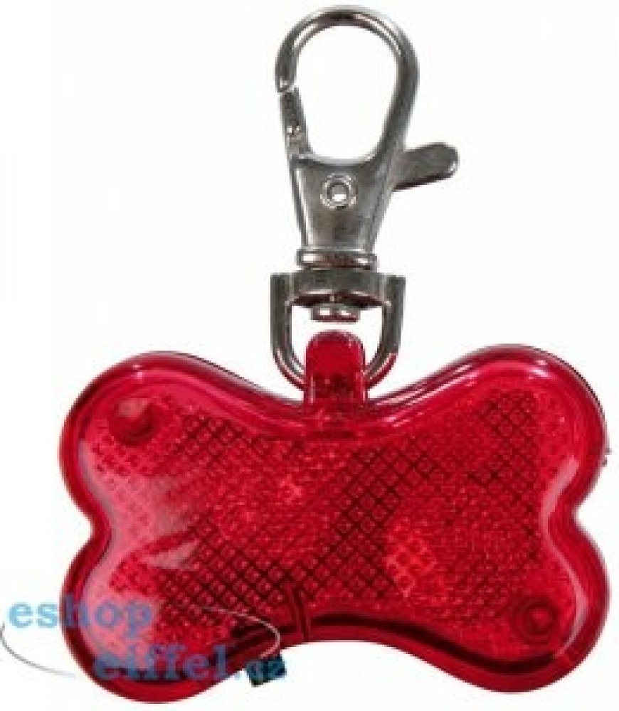 Svítící přívěsek "červená kost" snadno připnete k obojku a tím zvíšíte bezpečnost za špatné viditelnosti.