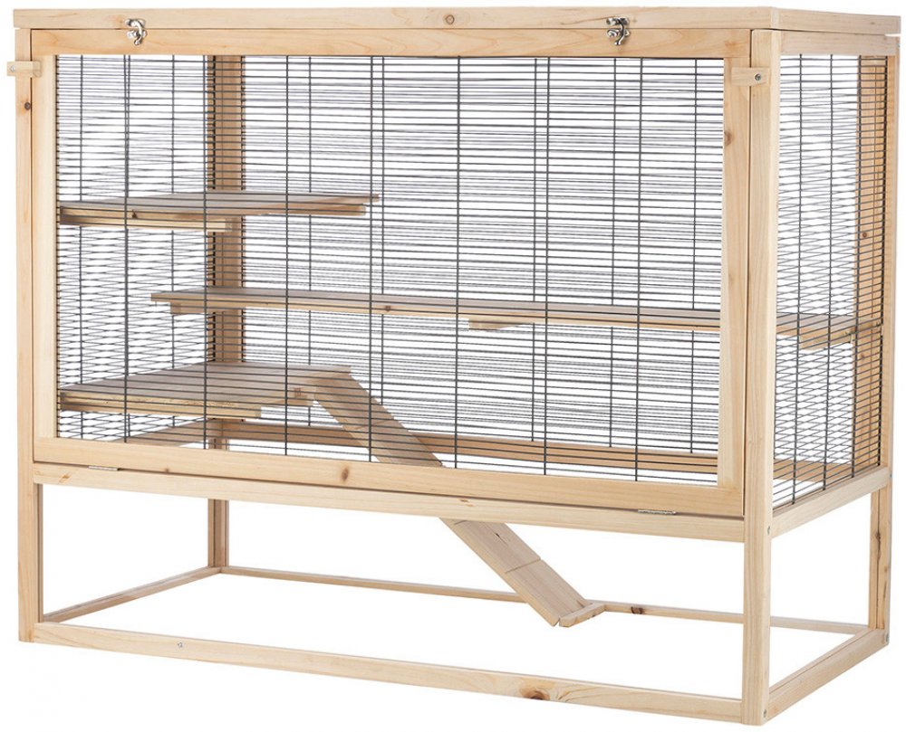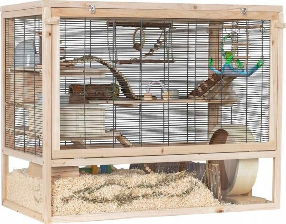 I malí hlodavci potřebují hodně místa! Díky vícepatrovému domečku pro myši Trixie nabídnete svým malým mazlíčkům útulný domov a spoustu prostoru pro lezení a hraní. Trixie vícepatrová klec pro myši má ve spodní části extra prostor, který můžete naplnit podestýlkou obzvláště vysoko. Díky tomu se mohou vaši čtyřnozí přátelé intenzivně zabavit hrabáním a budováním pelíšků. Díky akrylové desce můžete své chlupaté spolubydlící dokonce pozorovat! Trixie vícepatrovou klec pro myši dodáváme včetně 3 plošin, takže můžete svým mazlíčkům nastavit různé úrovně pro lezení. Trixie vícepatrová klec pro myši Hezká klec pro myši a další malé hlodavce Spodní prvek navíc: lze naplnit stelivem extra vysoko, pro hrabání a stavbu pelíšků Akrylová deska: pro pozorování obyvatel Snadný přístup: přední část a víko lze zcela odklopit, pro snadné čištění Neošetřené dřevo: vysoce kvalitní a neškodný materiál Včetně plošin: pro vytvoření různých úrovní k lezení v několika patrech Stabilní kovová mříž: umožňuje zavěšení hraček a příslušenství (k dostání samostatně) Bezpečné uzavření: kovový háček k uzavření víka Prostorný: spousta místa na hraní a dovádění Jednoduchá konstrukce: snadná montáž Barva: přírodní Rozměry: Celkem: D 100 × Š 80 × V 50 cm Rozteč mříží: 7 mm Materiál: Rám: dřevo, neošetřené Mříž: kov Deska: akryl Rozsah dodávky: 1× úkryt pro hlodavce, 3× plošina, 1× rampa Důležité upozornění: V žádném případě nepokládejte více klecí na sebe – tím by značně stoupla výška, z níž by mohla zvířata spadnout. Pro ochranu zvířat klece vždy postavte přímo na podlahu a nic na ně nepokládejte. Upozornění: Zajistěte svým domácím mazlíčkům dostatek pohybu! Doporučujeme, abyste zvířátku poskytli vhodnou ohrádku ke každodennímu volnému výběhu. Součástí dodávky jsou 3 plošiny a 1 rampa. Doplňky zobrazené na obrázcích výrobku nejsou součástí dodávky.