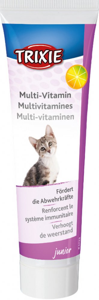 Trixie vitamínová pasta je hodnotné doplňkové krmivo pro koťata. Vitamínová pasta podporuje růst a zdraví Vašeho tygříka. Vyvážené složení vitamínů, kvasinek a hodnotných mléčných složek posiluje imunitní systém, zlepšuje metabolismus a napomáhá k husté a lesklé srsti. Kvalitní taurin podporuje zrak a srdeční funkci a napomáhá předcházet vzniku srdečních, nervových a mozkových vad. Díky ideální ko...