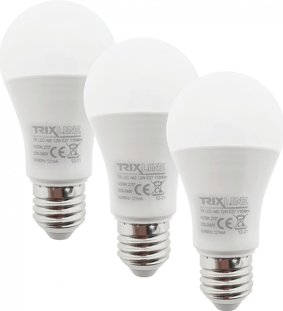 LED ŽÁROVKY TRIXLINE ve výhodném balení po 3 kusech. Úsporná LED žárovka s paticí E27 je šetrná k životnému prostředí, neobsahuje žádnou rtuť ani olovo. Na rozdíl od vláknových žárovek se osvědčuje i při extrémně nízkých a vysokých teplotách. Její životnost dosahuje až 30 000 hodin. Díky svému výkonu 6W výborně poslouží jako náhrada za klasickou 82W žárovku. LED žárovka se po zapnutí okamžitě rozsvítí bez jakékoliv prodlevy a vyzařuje příjemné teplé bílé světlo 4200K. Žárovku můžete použít v ložnici nebo dětském pokoji, barva světla je ideální pro odpočinek.