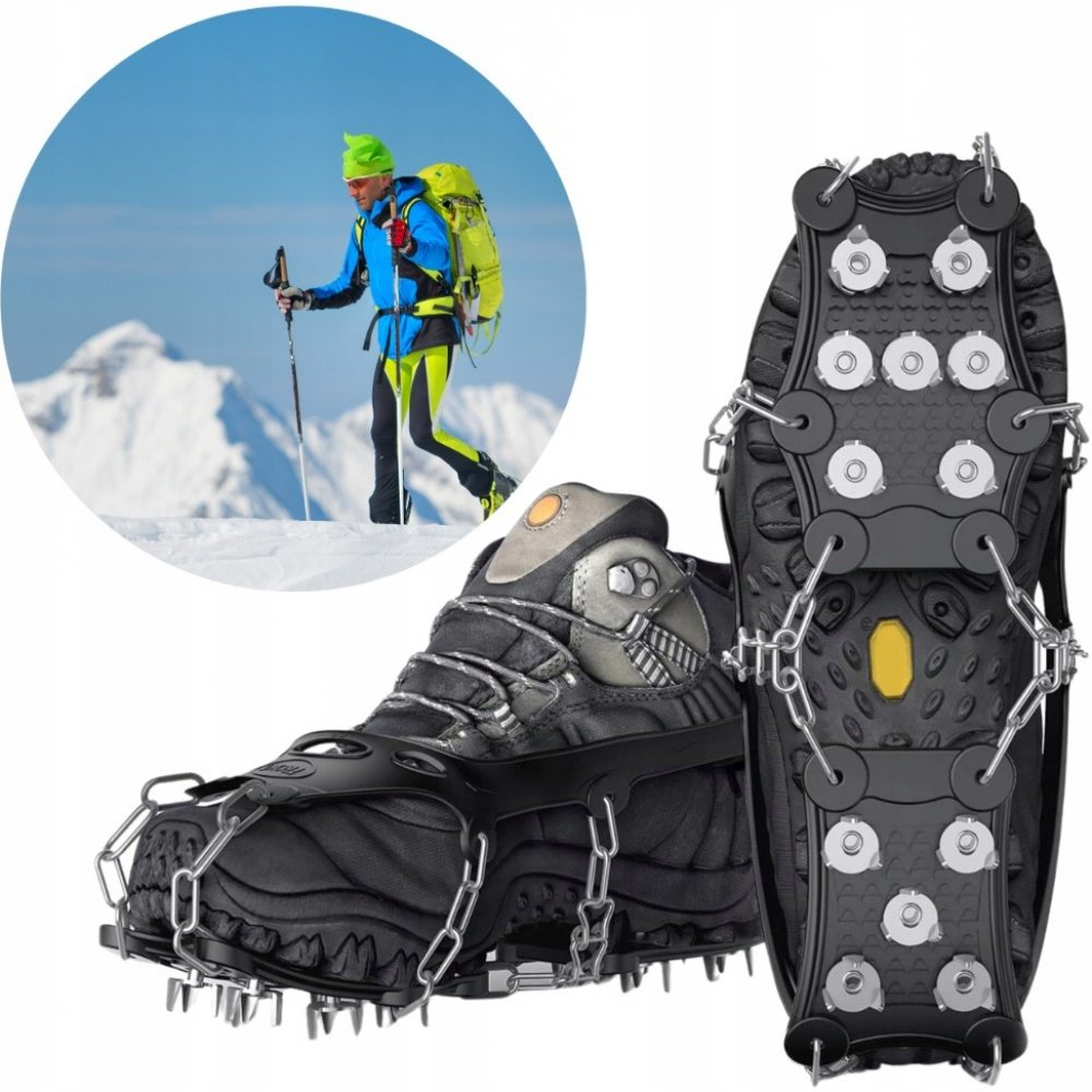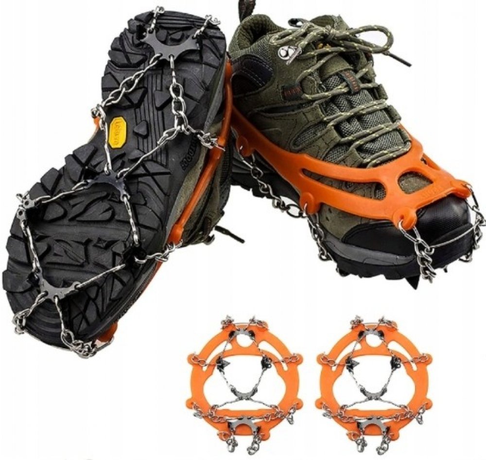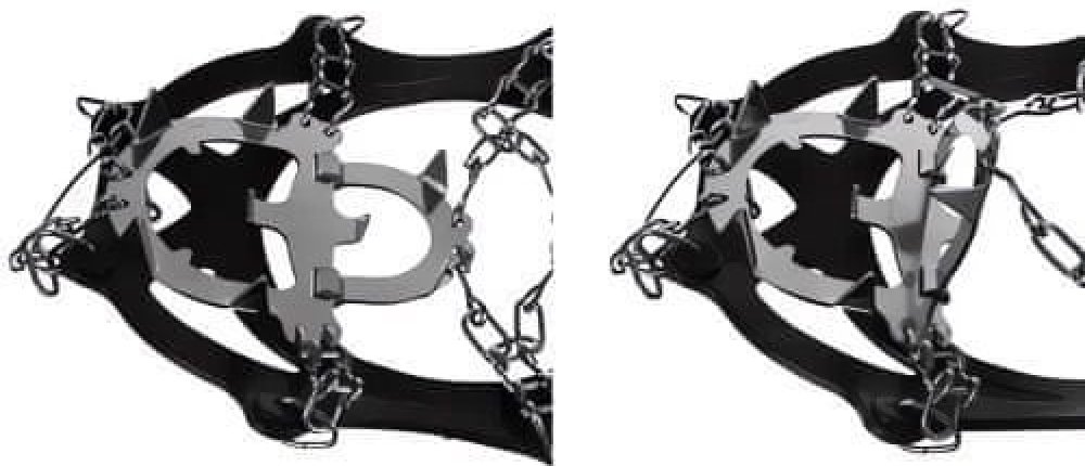 - NEREZOVÉ REŤAZE A VYSTUŽENÝ PäTNÍK – vyrobené z nerezovej ocele. Sú odolné voči hrdzi a korózii. Stačí natiahnuť elastický golier a navliecť ho na podrážku topánky. Naše gripy nepoškodia vašu obuv, pretože perfektne priliehajú k topánkam a zosilnená päta zaisťuje stabilitu najmä pri zjazde.