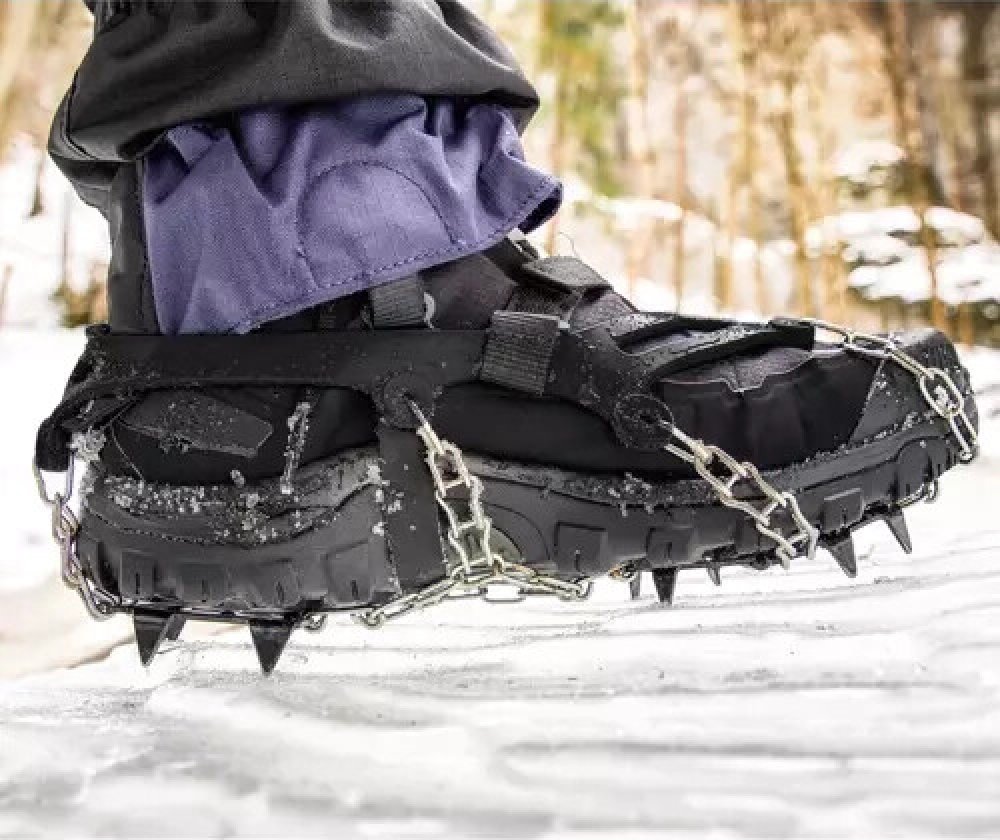 - PROTIŠMYK + PRÚŽKY – flexibilné návleky na topánky sú vybavené oceľovými hrotmi. Sú ako stvorené na turistické a turistické výlety do lesov a hôr. Nasadením gripov si poradíme s chôdzou v náročných poveternostných podmienkach ako je sneh a ľad. Dodatočné popruhy upevnené suchým zipsom zabraňujú zošmyknutiu rukovätí z topánok.