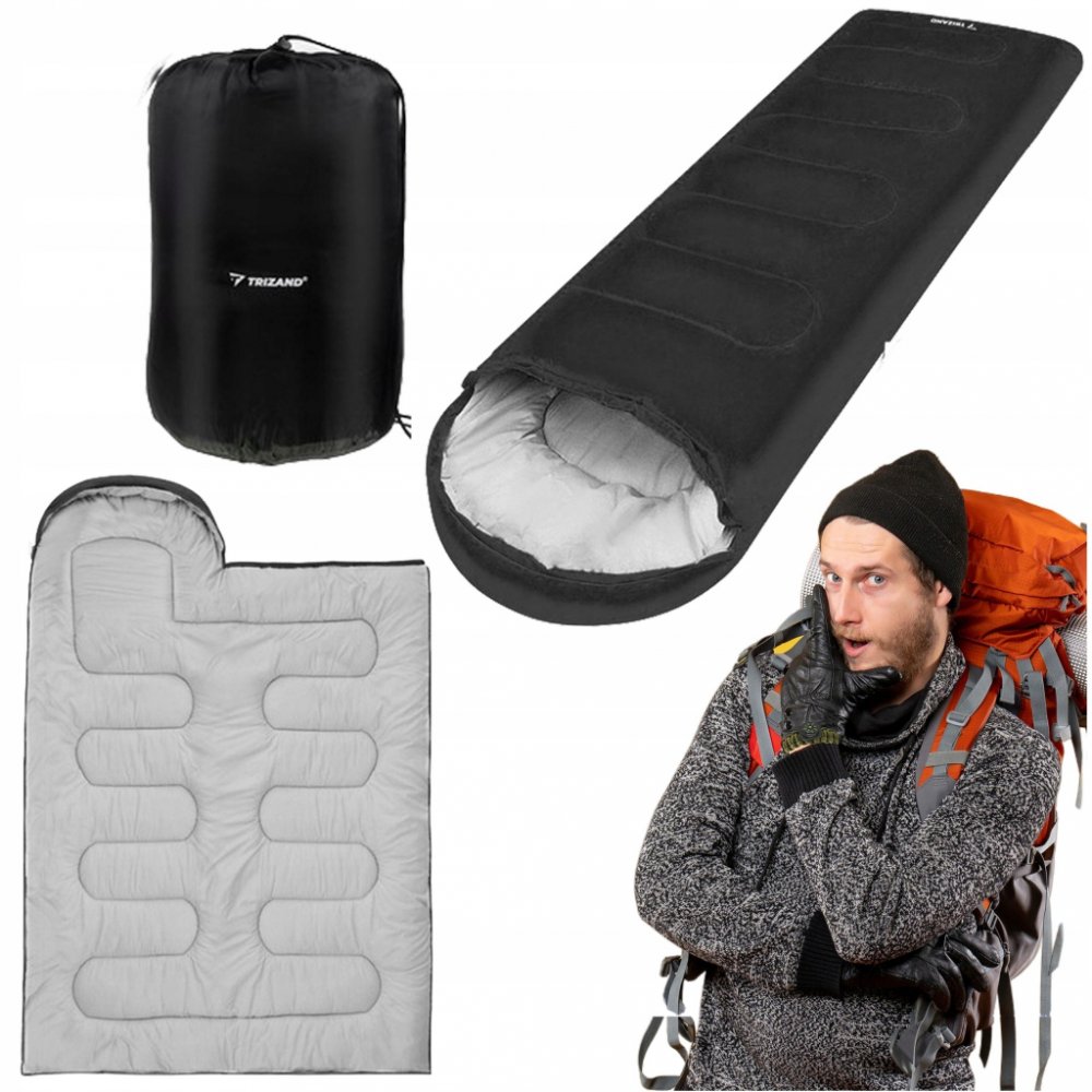 Teplý a lehký turistický spací pytel typu mumie 2 v 1 s kapucí.