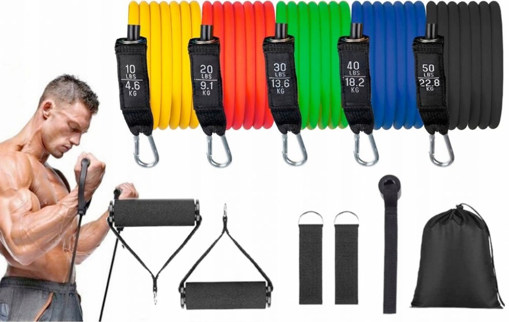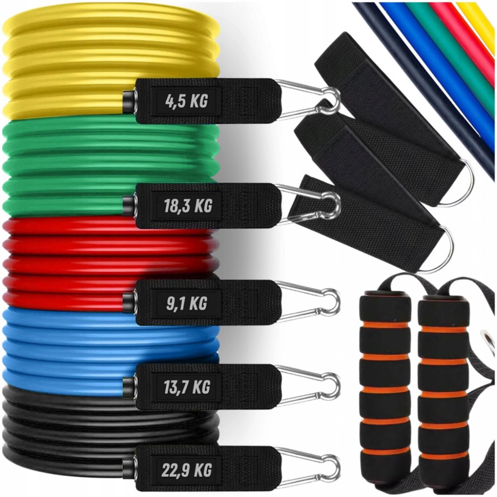 Sada odolných posilovacích pásů je ideální pro domácí i venkovní silový, kondiční či crossfit trénink. Díky pěti pásům s různou úrovní odporu (od 5 do 25 kg) lze trénink snadno přizpůsobit vašim individuálním schopnostem. Sada nabízí široké možnosti montáže pomocí úchytů, kotníkových popruhů a držáku pod dveře, takže můžete cvičit celé tělo bez nutnosti používat klasické závaží.