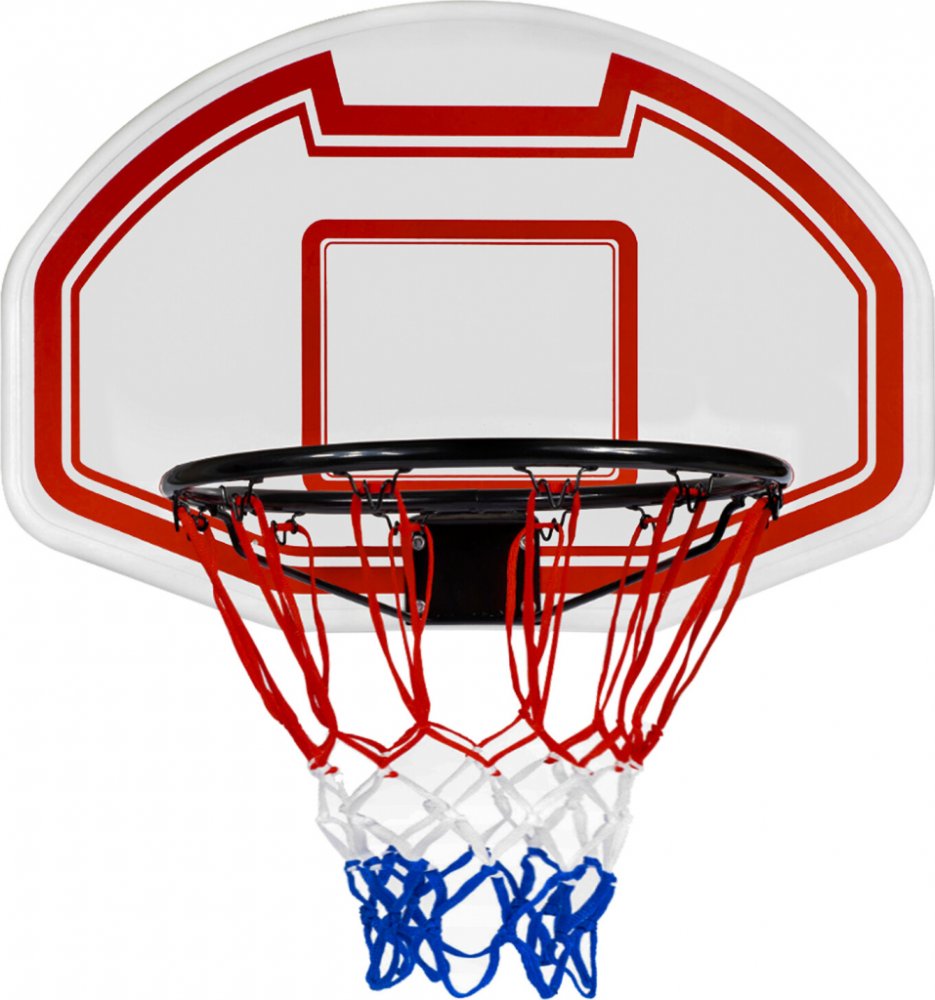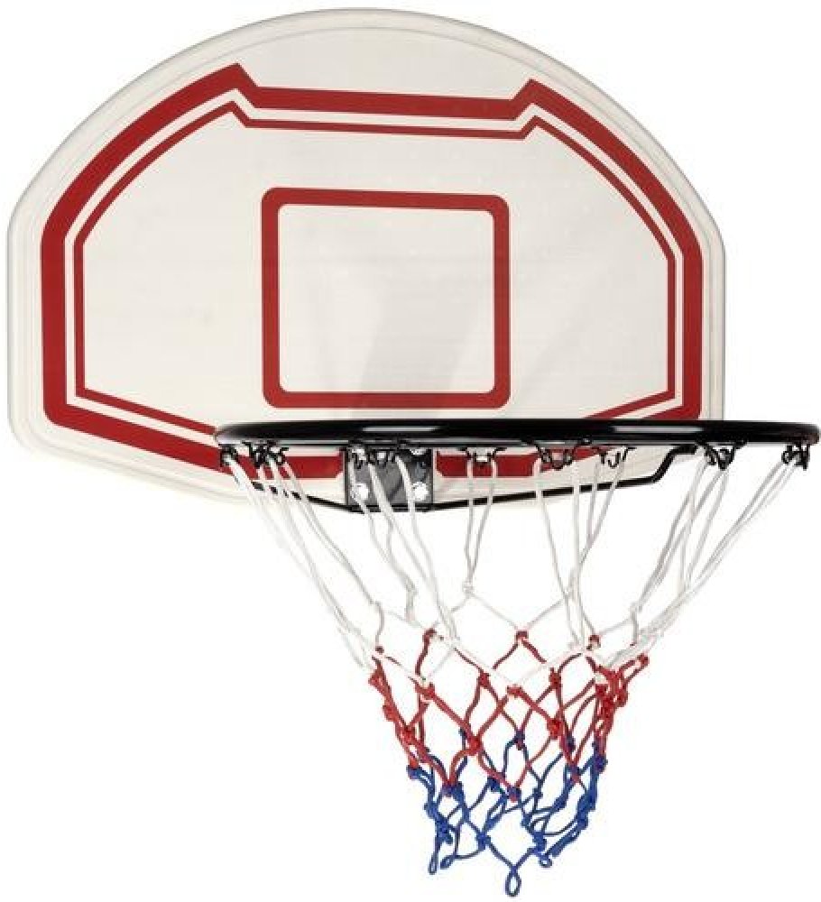 Na odrazové desce s klasickými červenými čarami je upevněn basketbalový koš s ocelovou obroučkou o průměru 45 cm lakovanou práškovým lakem a se síťkou odolnou proti povětrnostním vlivům.