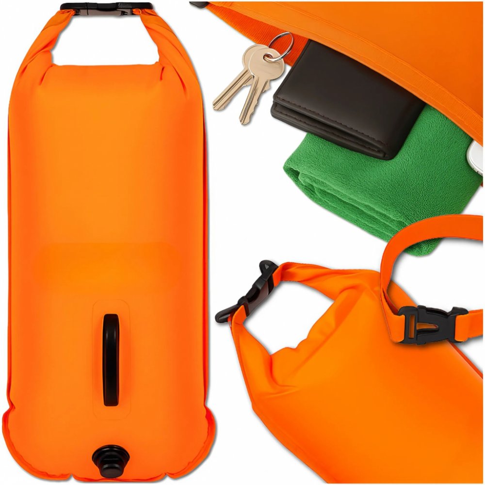 BOJOVÁ A SUCHÁ KAPSA 2V1 - nafukovací bójka s funkcí suché kapsy je praktickou výbavou pro plavce a všechny, kteří tráví čas u vody. Kombinuje funkce bezpečnostní bójky a voděodolné kapsy pro uložení cenných předmětů jako je telefon, klíče, doklady nebo peněženka. Kapsa má dostatečnou kapacitu pro uložení základních osobních věcí.