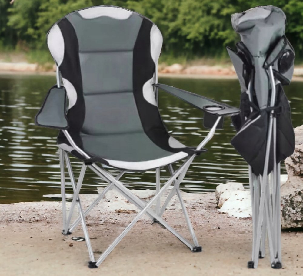 VELKÁ SKLÁDACÍ RYBÁŘSKÁ ŽIDLE - ČERNO-ŠEDÁ