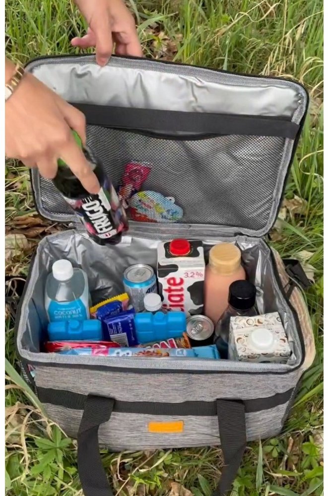 Tato termotaška je dokonalým řešením pro uchování potravin a nápojů v chladu během cestování. S objemem 20/40 litrů nabízí taška Strandtasche dostatek prostoru pro všechny vaše piknikové, plážové nebo cestovní potřeby. Díky odolnému materiálu je pevná a trvanlivá, zatímco vnitřní potah zajišťuje účinnou izolaci. Díky nastavitelnému popruhu a voděodolným vlastnostem je praktická a všestranná pro turistiku, kempování nebo jen tak na výlet. Udržuje chlad a svěžest - Tato plážová termotaška je vybavena dvěma speciálními chladicími filtry, které udržují teplotu uvnitř a udržují vaše potraviny, nápoje a kosmetiku chladné a svěží. Díky izolační tašce zůstanou produkty příjemně chlazené i v horkém počasí na pláži.Udrží vás v teple - Tato termotaška na oběd je díky pěně EVA a kvalitní izolační fólii uvnitř ideální na cesty k přepravě teplých potravin. I v chladnějších a deštivých dnech udrží taška na oběd vaše jídlo teplé.Specifikace - Barva: šedá; Materiál: Oxfordská tkanina + nylon + Imitace kůže; Vnitřní potah: Fólie; Náplň: EVA pěna; Popruh: Nylon + PP; Chladicí filtr: ABS; Objem: 40 l/ 20 l; Voděodolný: Ano; Izolovaný: Rozměry: 47 x 28,5 x 30 cm 37/ 24/ 24,5 cm; Hmotnost: 1,05 kg/ 0,95 kg; Hmotnost balení: 1,15 kg/ 1 kg.Praktické - chladicí taška je vyrobena z nepromokavého materiálu a je vybavena praktickými uchy, ramenním popruhem a několika kapsami. Díky tomu můžete snadno přepravovat potraviny, nápoje nebo kosmetiku a mít vše zároveň po ruce.Velká kapacita - Tato pikniková taška s objemem 20/ 40 litrů nabízí dostatek prostoru pro vaše plážové nebo piknikové nádobí. Ať už balíte jen pro sebe, nebo pro celou rodinu, tato prostorná chladicí taška vám umožní pohodlně přenášet vše potřebné.
