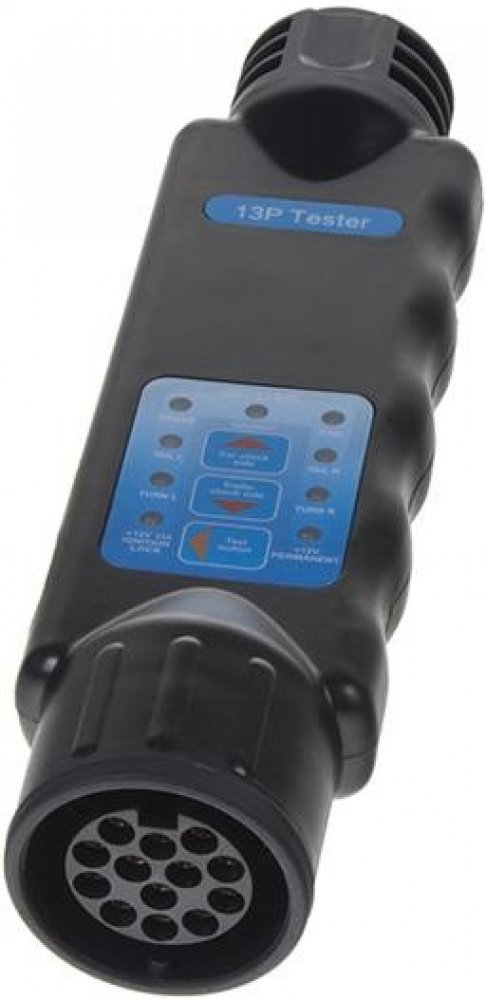 Tento tester s LED diodou otestuje všechny funkce osvětlení vozidla i přívěsu - zásuvky i zástrčky. Ukazatel LED diody zobrazí každé problematické připojení.Přezkouší všechny 13 - pólové zásuvky a konektory. Napájení testeru pomocí 9 V blokové baterie (není součástí balení).Technické parametryurčeno pro 13 pin zásuvkynapětí vozidla 12 Vnapájení testeru pomocí 9 V blokové baterie (není součástí balení)