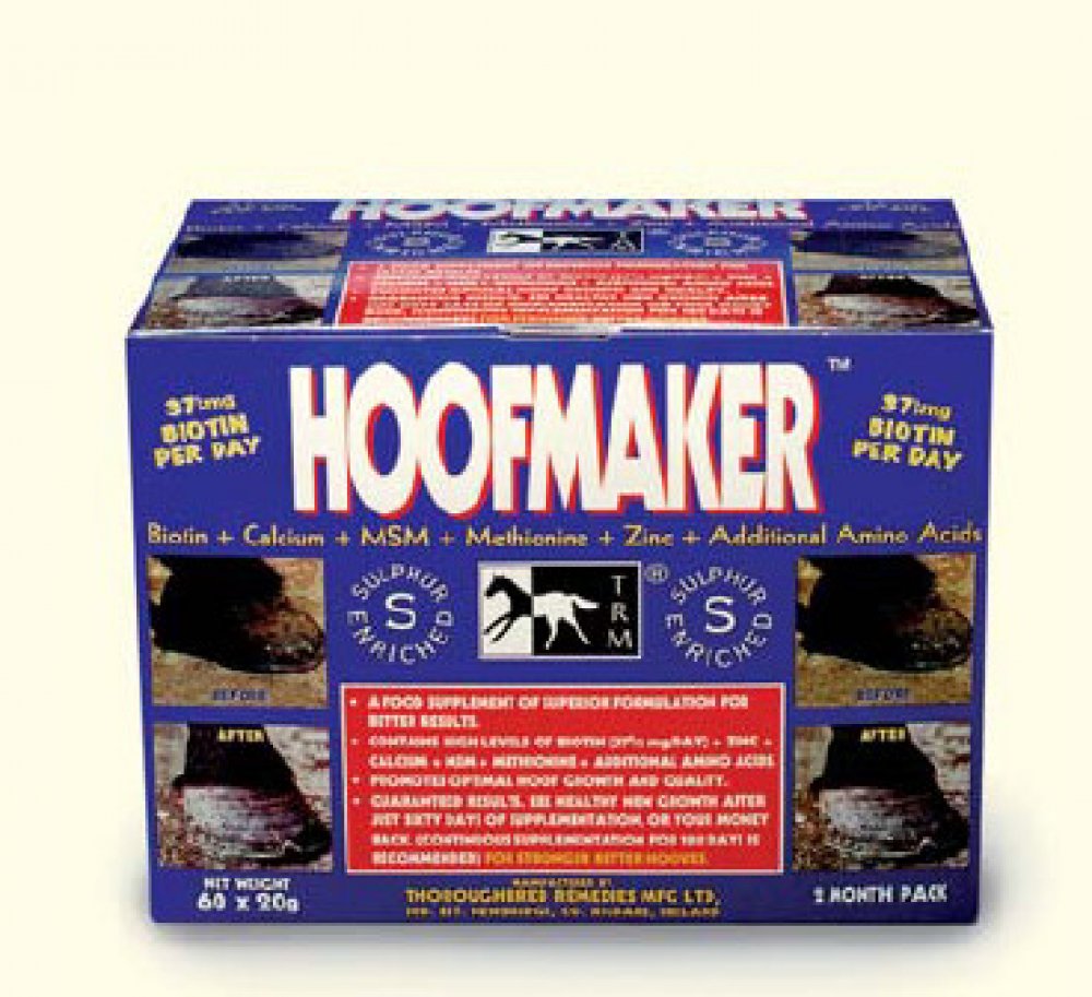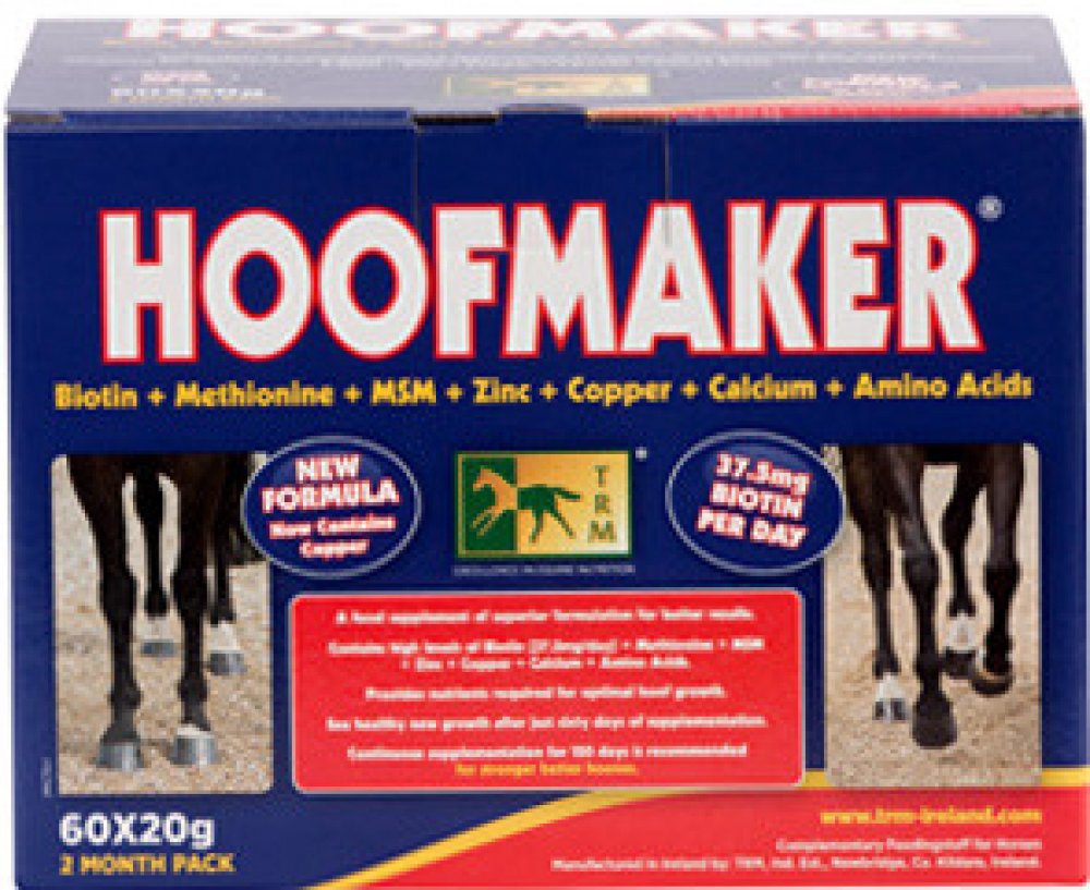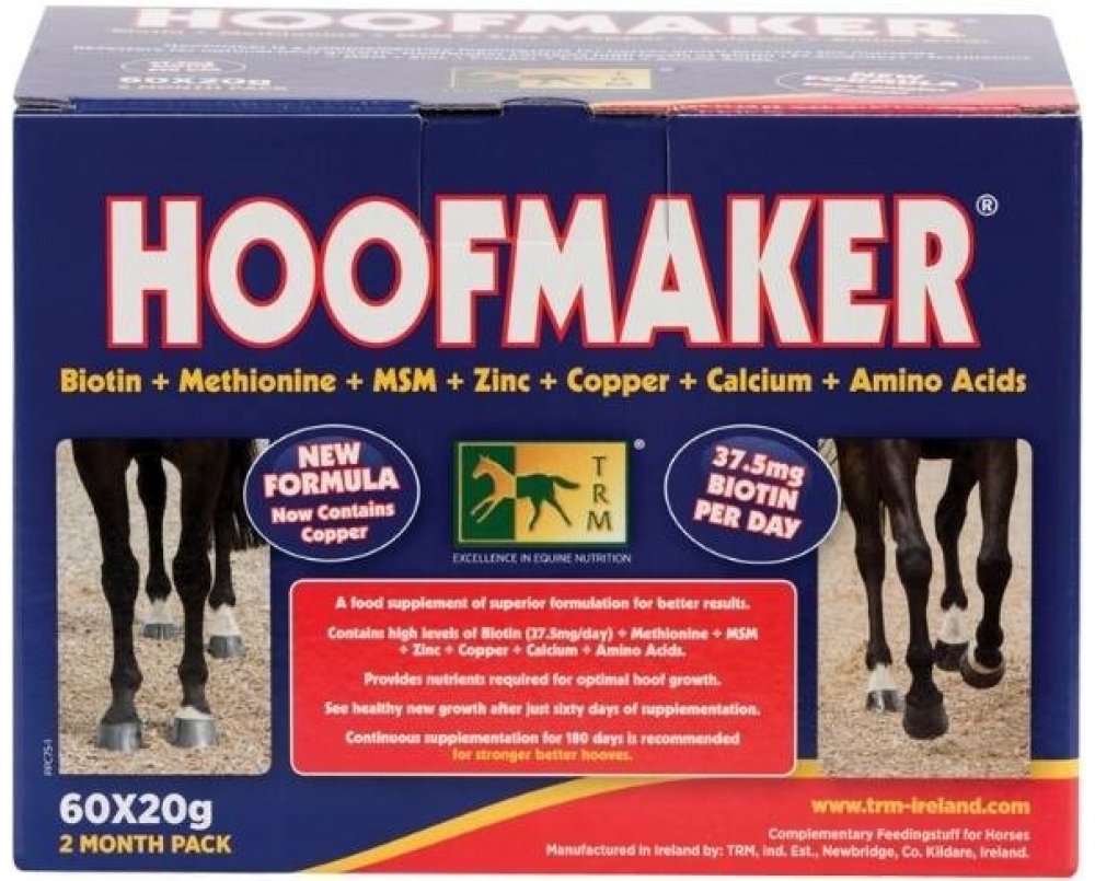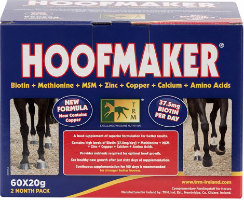 Dospělé koně 20 g denně. Hříbata: 20 g každý druhý den. Pro získání nejlepších možných výsledků se doporučuje používat HOOFMAKER během 180 dnů. Přírůstek kopytní rohoviny je zřetelný už po jednom měsíci podávání doplňku.