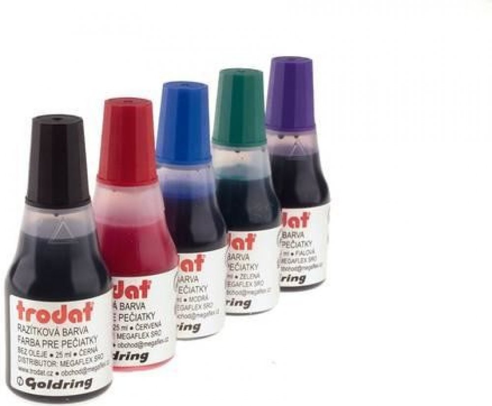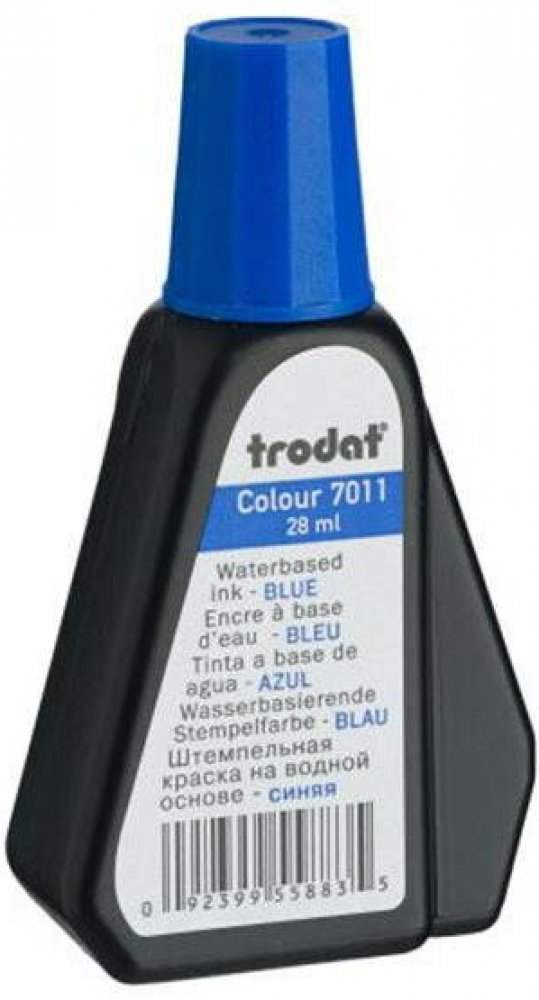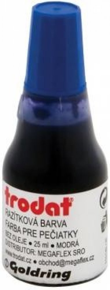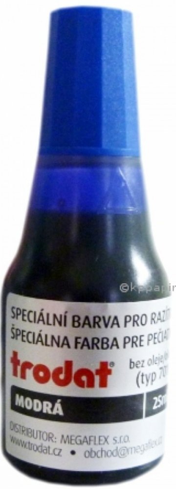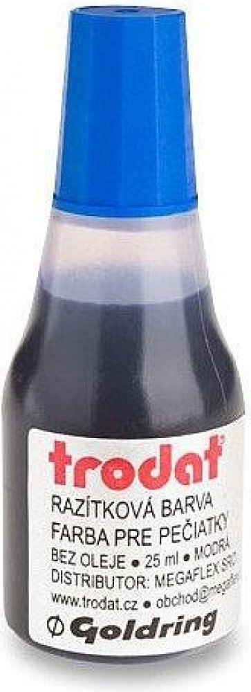 Kvalitní kancelářská razítka potřebují stejně kvalitní barvu. Proto neváhejte a pořiďte si razítkovou barvu značky TRODAT, která se vyrábí v nejrůznějších barevných variacích. Můžete si zvolit z barvy zelené, červené, fialové, černé a spoustu dalších. Volba je jen na vás. Barva je k dostání v praktických nádobkách o objemu 28 ml. Lze zakoupit však minimálně 3 kusy barev.Barva:Modrá
