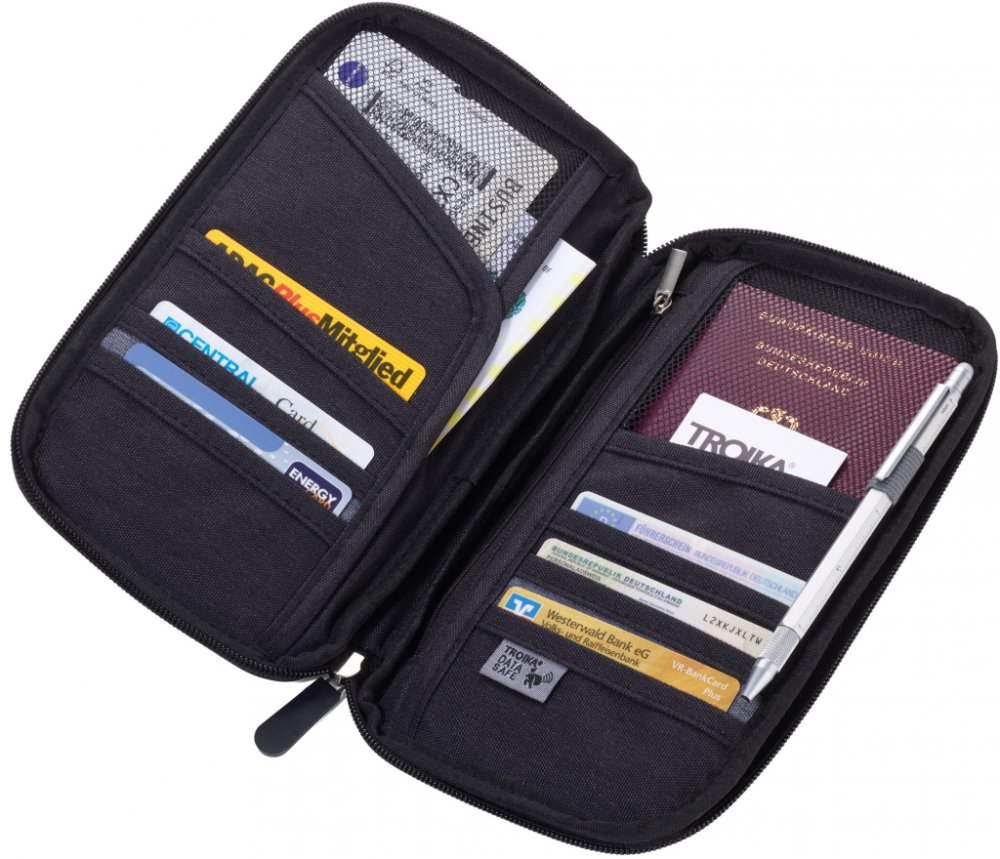 12 vnitřních prostorů nabízí prostor pro dokumenty: pas, palubní lístky, palubní karty, občanské průkazy a mnoho dalšího, ať už na cestách nebo jako praktický společník v každodenním životě.