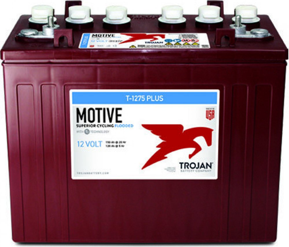 Trakční baterie Trojan s tekutým elektrolytem a technologií mřížkových desek představují výkonnou a cenově výhodnou alternativu ve srovnání s klasickými trakčními bateriemi. Baterie Trojan se vyznačují robustní konstrukcí s extrémně silnými mřížkovými deskami a speciální slitinou. Dalšími výhodami jsou dlouhá životnost a vysoká odolnost vůči cyklickému namáhání. Tyto baterie jsou využívány zejména v oblasti malých pohonů (zdvižné plošiny, golfové vozíky, paletizační vozíky atd.)Parametry:Napětí (V): 12Kapacita v Ah C5/C20: 120/150Délka (mm): 327Šířka (mm): 181Výška (mm): 271Umístění plusového kontaktu: vlevoTyp kontaktu: šroub M8Počet cyklů: 700-900Hmotnost (Kg): 37