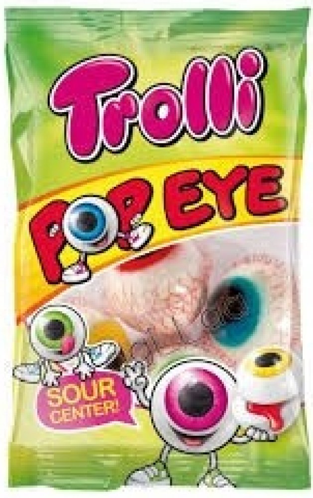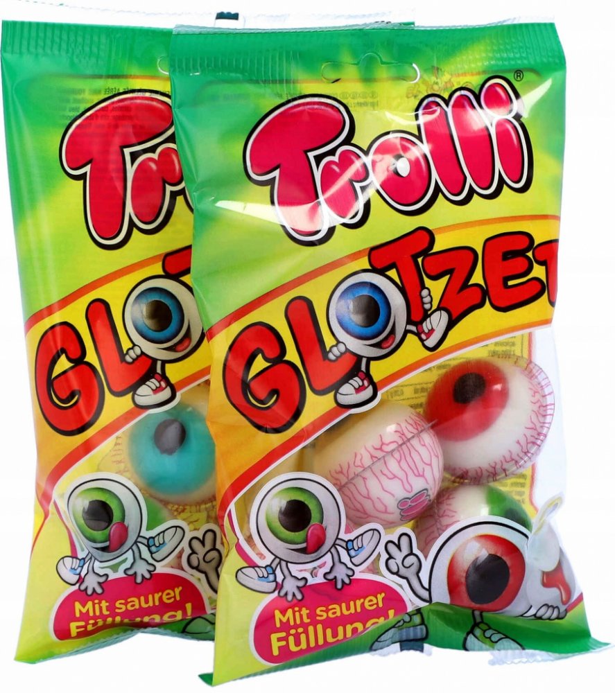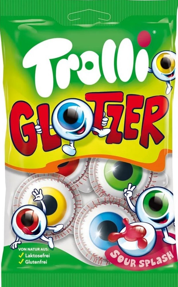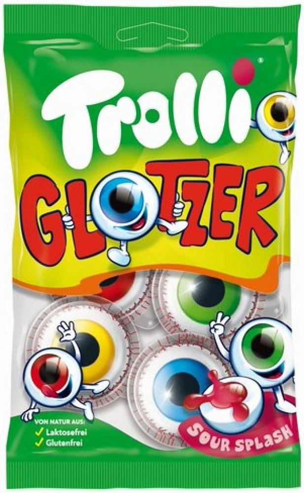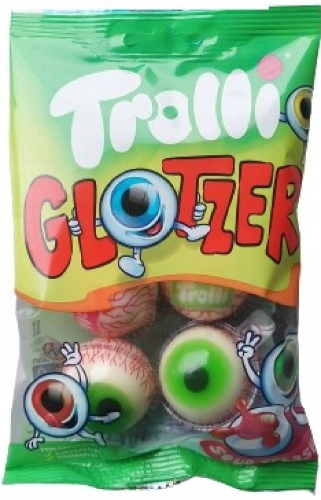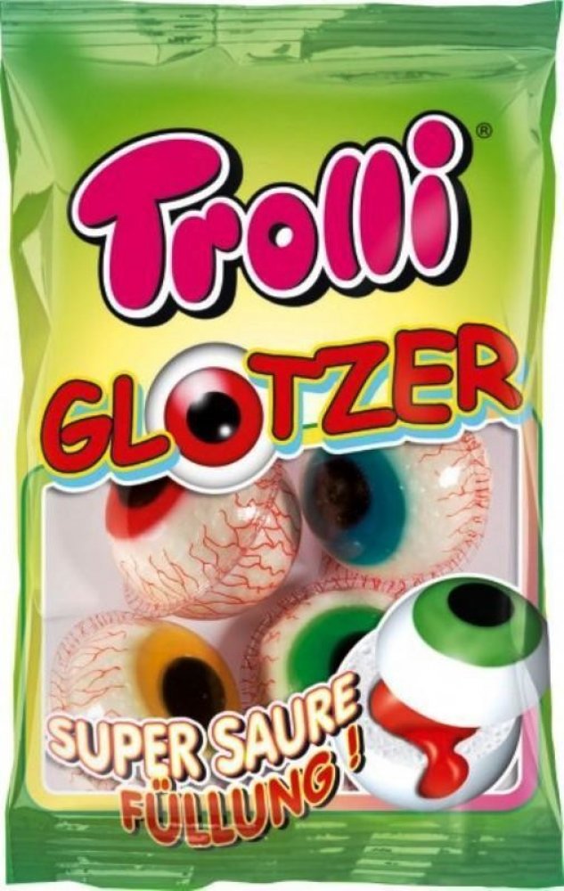 Trolli Glotzer je první trojrozměrný ovocný bonbon na světě! „Vykulený pohled“ šokuje na každé párty. Jeho strašidelná červená náplň chutná zatraceně lahodně a kysele brní na jazyku.