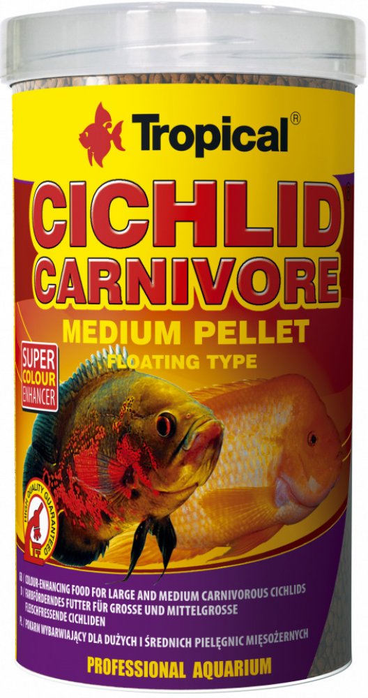 Při volbě krmiva pro akvarijní ryby je dobré se zaměřit na lehkou stravitelnost a optimální obsah živin. Nabízené krmivo ve formě pelet a tyčinek zpestří akvarijním rybám potravu. Akvarijní krmivo Tropical se vyrábí pro cichlidy. Nechybí v něm ani vitamín E, vitamín A, vitamín D3 a vitamín C. Díky velkému množství proteinů je vhodné pro akvarijní ryby, které se ve stravě neobejdou bez vysokého podílu složek živočišného původu. Hmotnost krmiva pro ryby Tropical činí 0,36 kg. Balení je tvořeno 1 kusem krmiva do akvária. Zásadní vlastnosti krmiva pro akvárijní ryby Tropical Cichlid Carnivore Pellet M 1000 ml 360 g Krmivo pro rybičky Tropical náleží mezi kompletní krmivo Jsou to pelety a tyčinky Krmivo pro rybičky Tropical se používa pro cichlidy Rybičky určitě ocení akvarijní krmení s vysokým obsahem proteinů Krmivo nepostrádá ani vitamín E, vitamín A, vitamín D3 a vitamín C V balení se nachází 1 kus krmiva do akvária Hmotnost potravy pro akvarijní ryby Tropical představuje 0,36 kg