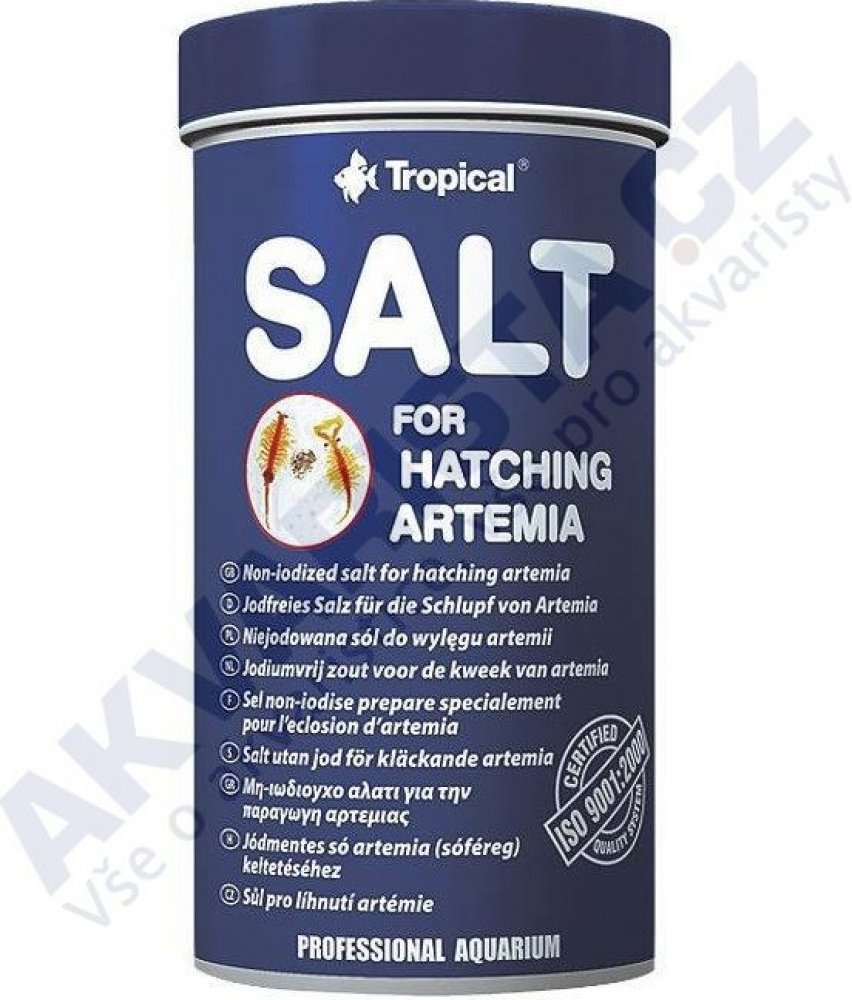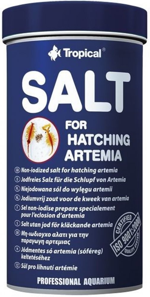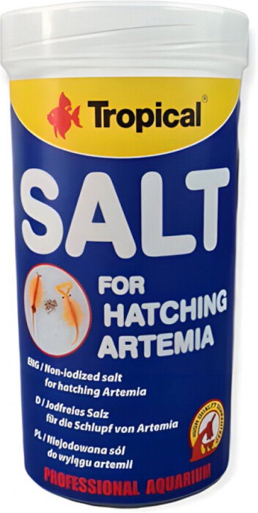 Speciální sůl pro líhnutí artemí – je určená na přípravu roztoku ve kterém jsou inkubované vajíčka Artemia salina. Neobsahuje toxický pro larvy artemie jód. Pro co nejlepší využití vajíček i maximalizaci jejich líhnutí, byla sůl obohacená látkou, která zvyšuje reakci solního roztoku na pH 8. Dodržování všech pokynů spojených s líhnutím larev artemií společně s používání k líhnutí speciální soli zaručí 90% výsledek líhnutí z vajíček Artemia salina značky Tropical. Pro přípravu solného roztoku je třeba v jednom litru vody rozpustit cca 15-20 g soli. Získané takto larvy artemií jsou nezastupitelným krmivem pro potěr sladkovodních i mořských ryb, malých druhů ryb a mnohých mořských bezobratlovců.