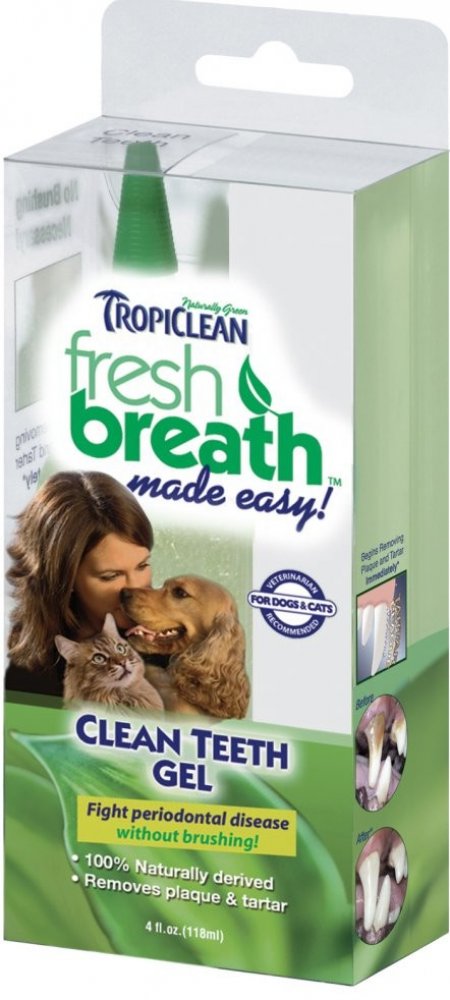 Krmivo.vyhodne.net Vám nabízí... Čistící gel na zuby pro psy i kočky. Začíná pracovat ihned po aplikaci proti zubnímu plaku a kameni bez nutnosti mechanického čištění kartáčkem. Vytváří přirozené prostředí v ústní dutině. Uklidňuje drobné poranění dásní. Použití: Aplikujte 2 kapky gelu z každé strany tlamy. Aplikujte přímo na zuby postihnuté plakem. Používejte jednou denně. Brzy zjistíte, že si vaše zvíře opakovaně olizuje rty. To je úplně normální a pomáhá to gelu smíchat se se slinami a dostat se tak do všech míst. Pro maximální účinek dejte po dobu 30 minut jídlo a vodu z dosahu. Čistění kartáčkem není potřebné, ale může urychlit odstraňování plaku. Po 30 dnech používaní, může být aplikace pouze 2x týdně. Složení: čistá voda, přirozeně odvozený alkohol, přírodní mentol, glycerín, přírodní čistič, carbopol, chlorofyl, extrakt z lístků zeleného čaje.